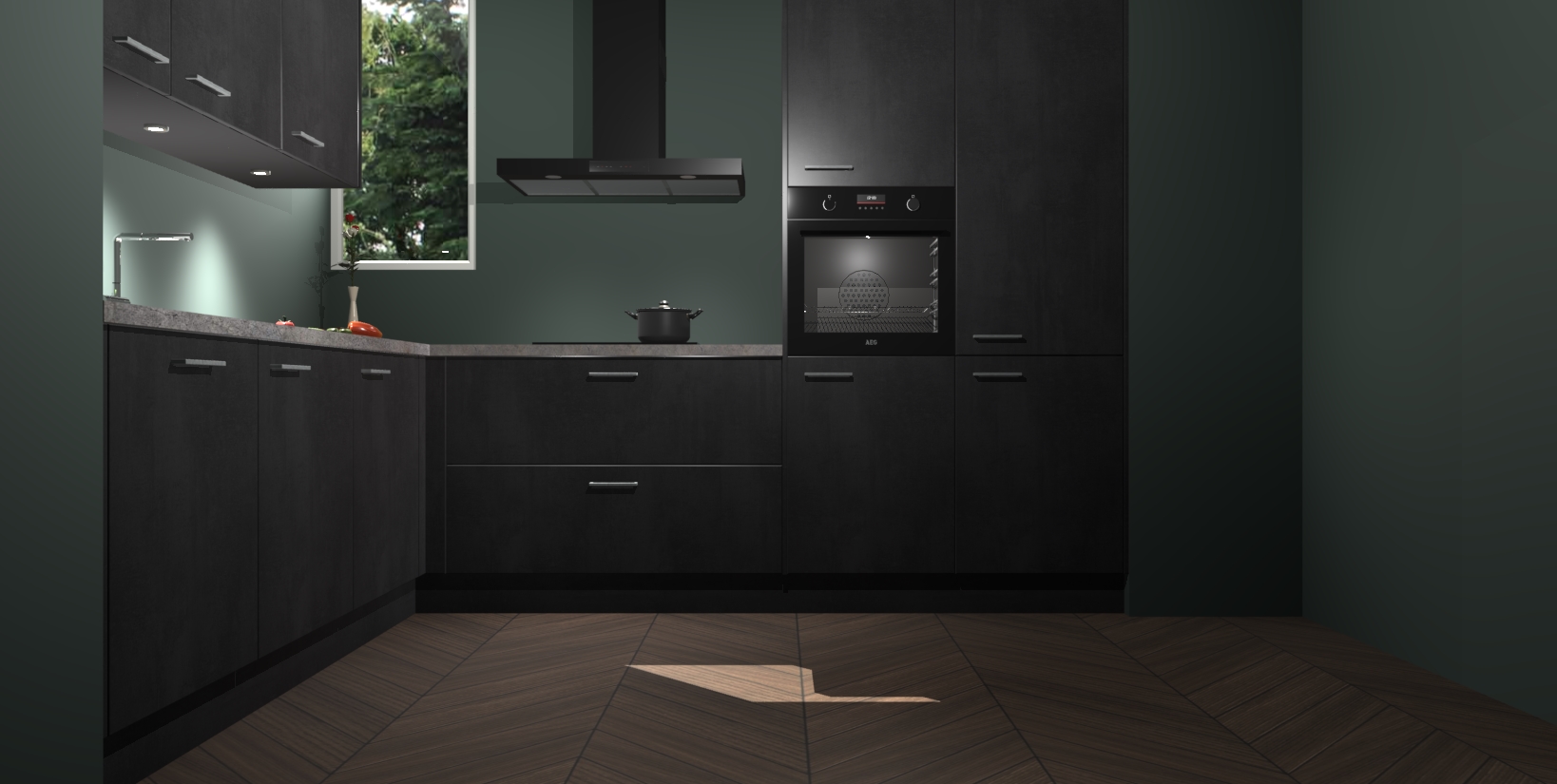 Maak u keuken elegant en verfijnd met de beton zwarte keuken Buenos Aires! Dit prachtige stuk heeft warme kleuren voor een strak, modern gevoel dat u de adem zal benemen. De handgrepen heeft net als de binnenkant van de kasten dezelfde beton zwarte afwerking, waardoor alles er nog beter uitziet.