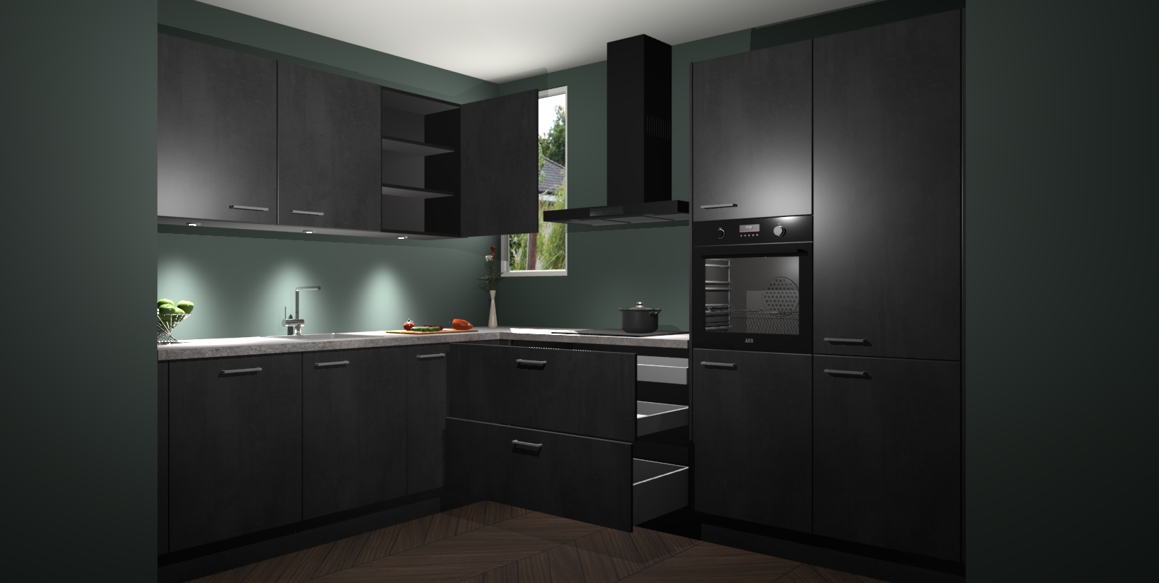 In deze box zijn alle kleuren verzameld van de deuren en werkbladen. Vraag de gratis kleurenbox aan en kijk thuis rustig verder!