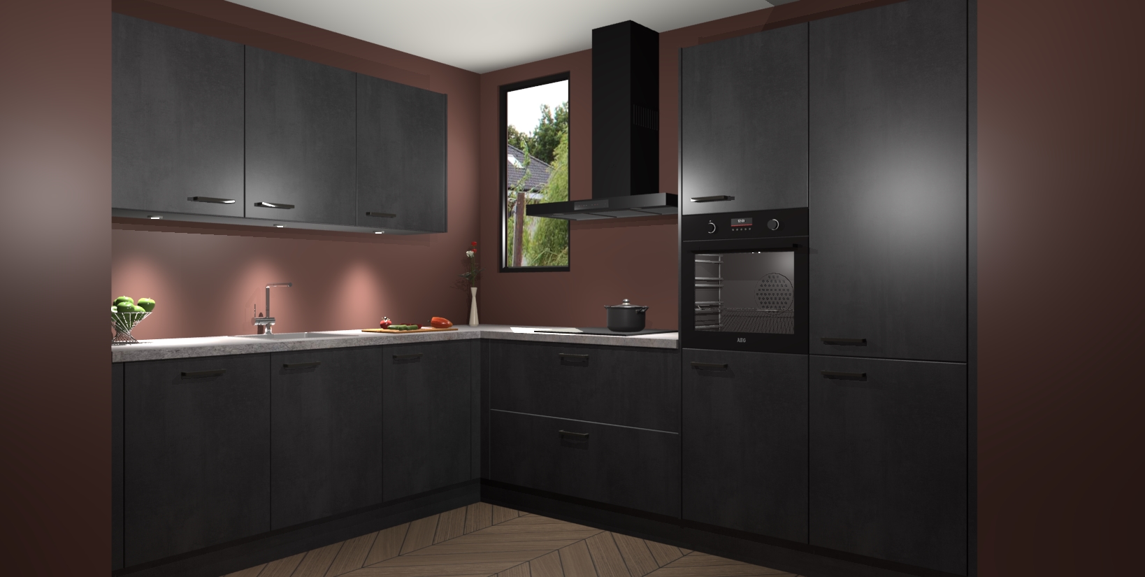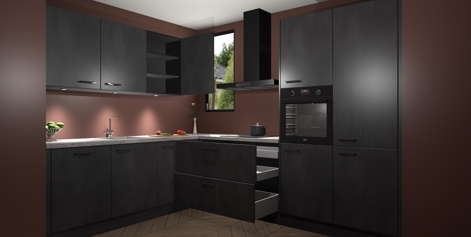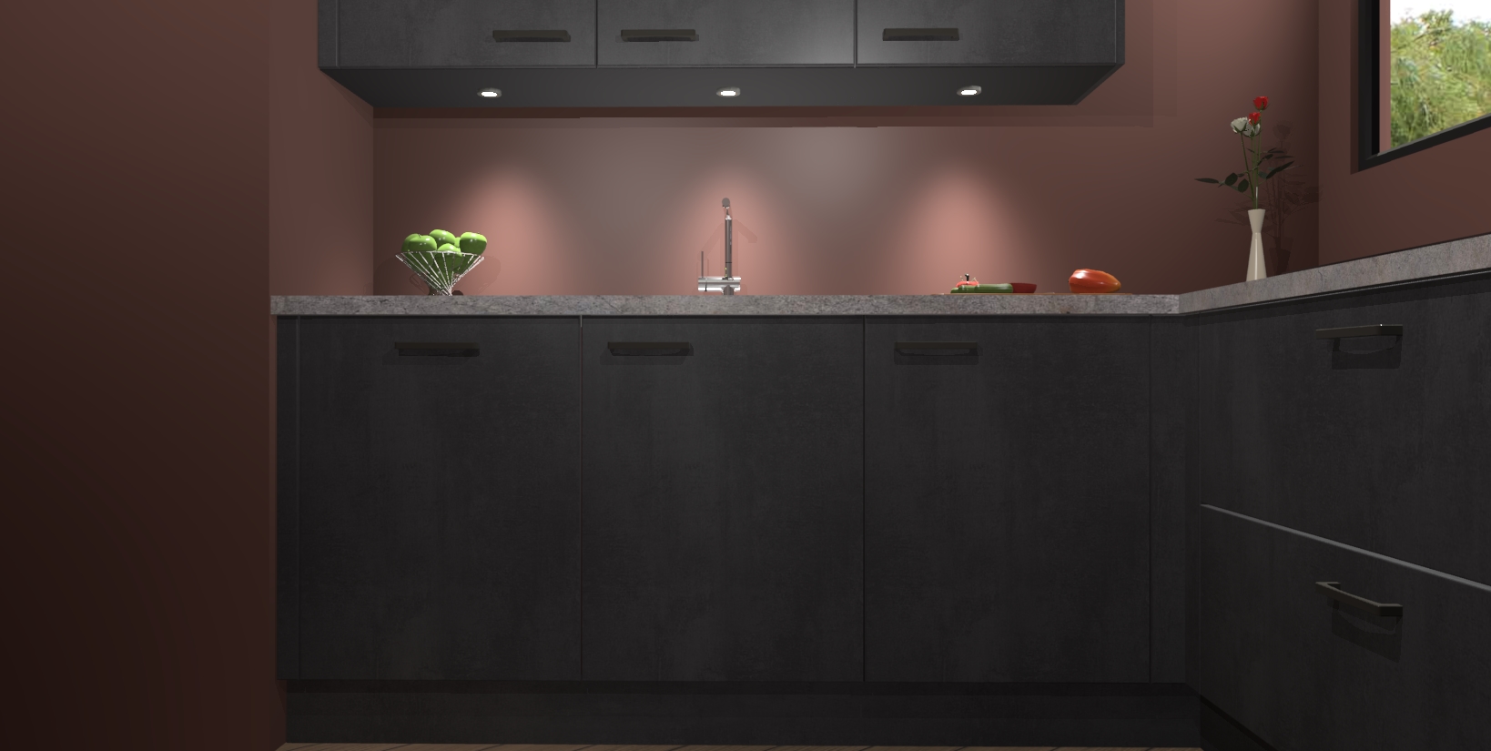 Maak u keuken elegant en verfijnd met de beton zwarte keuken Buenos Aires! Dit prachtige stuk heeft warme kleuren voor een strak, modern gevoel dat u de adem zal benemen. De handgrepen heeft net als de binnenkant van de kasten dezelfde beton zwarte afwerking, waardoor alles er nog beter uitziet.