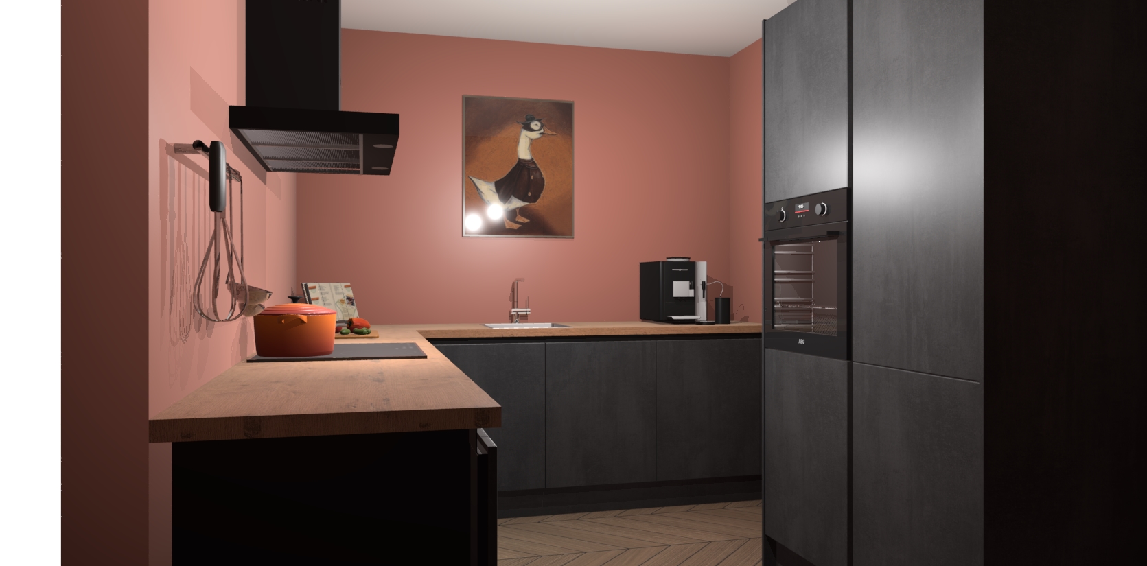 Met een modern, tijdloos design en ruime opslagruimte, zult u zich in no-time thuis voelen in uw nieuwe keuken. Uw leven wordt eenvoudiger met de soft-close deuren die voor het ultieme stille comfort zorgen - geen geluid dat u stoort terwijl u kookt. Ook is de keuken voorzien van 5 ingebouwde apparaten: een oven, inductie kookplaat, afzuigkap, vaatwasser en koelkast. Deze kunnen gemakkelijk na bestelling worden bijgewerkt naar AEG - waardoor uw luxe ervaring compleet is.