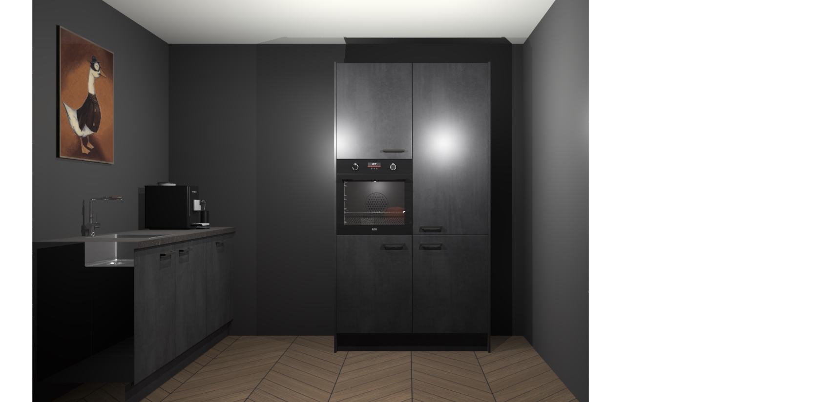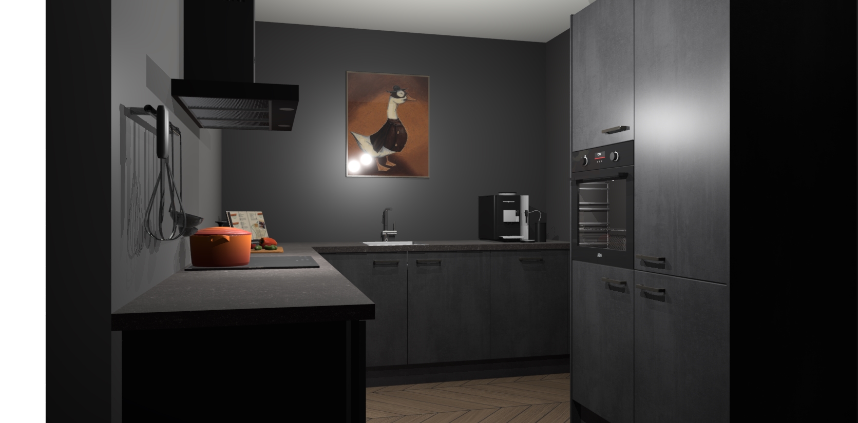 Met een modern, tijdloos design en ruime opslagruimte, zult u zich in no-time thuis voelen in uw nieuwe keuken. Uw leven wordt eenvoudiger met de soft-close deuren die voor het ultieme stille comfort zorgen - geen geluid dat u stoort terwijl u kookt. Ook is de keuken voorzien van 5 ingebouwde apparaten: een oven, inductie kookplaat, afzuigkap, vaatwasser en koelkast. Deze kunnen gemakkelijk na bestelling worden bijgewerkt naar AEG - waardoor uw luxe ervaring compleet is.