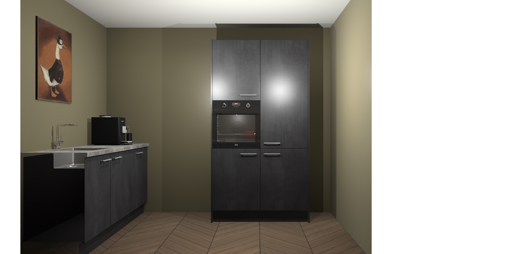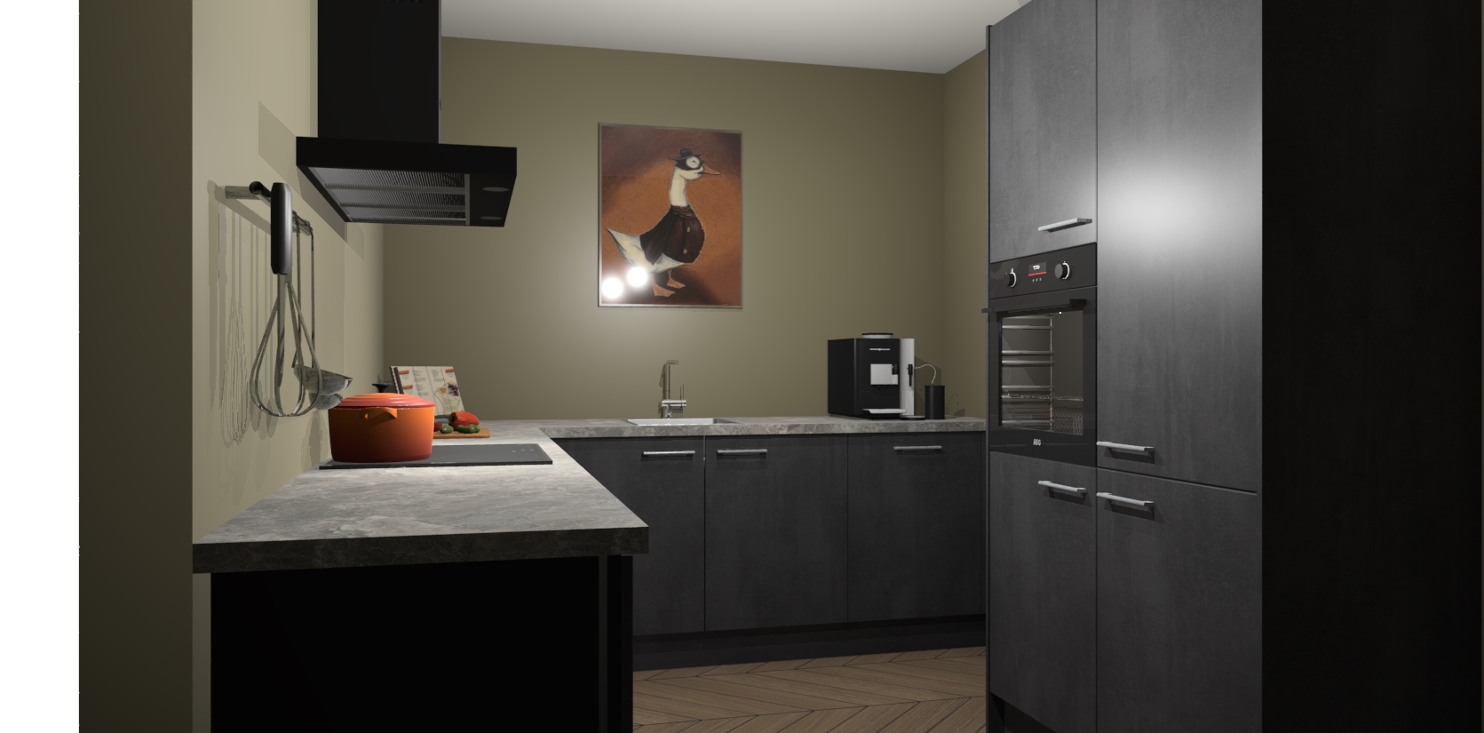 Met een modern, tijdloos design en ruime opslagruimte, zult u zich in no-time thuis voelen in uw nieuwe keuken. Uw leven wordt eenvoudiger met de soft-close deuren die voor het ultieme stille comfort zorgen - geen geluid dat u stoort terwijl u kookt. Ook is de keuken voorzien van 5 ingebouwde apparaten: een oven, inductie kookplaat, afzuigkap, vaatwasser en koelkast. Deze kunnen gemakkelijk na bestelling worden bijgewerkt naar AEG - waardoor uw luxe ervaring compleet is.