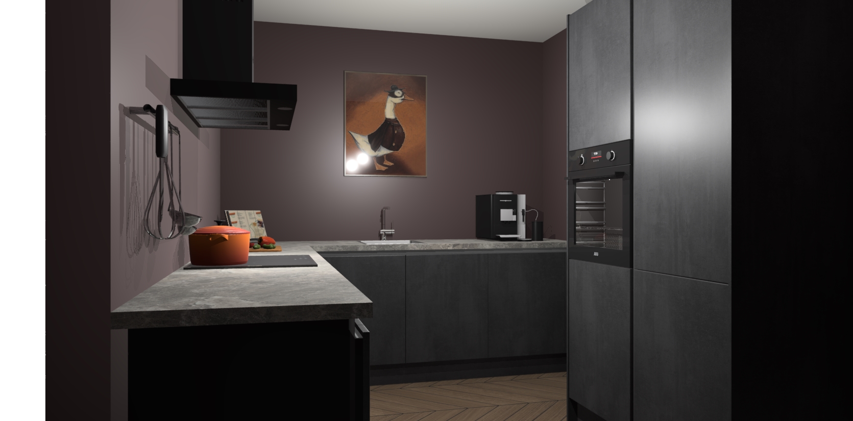 Met een modern, tijdloos design en ruime opslagruimte, zult u zich in no-time thuis voelen in uw nieuwe keuken. Uw leven wordt eenvoudiger met de soft-close deuren die voor het ultieme stille comfort zorgen - geen geluid dat u stoort terwijl u kookt. Ook is de keuken voorzien van 5 ingebouwde apparaten: een oven, inductie kookplaat, afzuigkap, vaatwasser en koelkast. Deze kunnen gemakkelijk na bestelling worden bijgewerkt naar AEG - waardoor uw luxe ervaring compleet is.