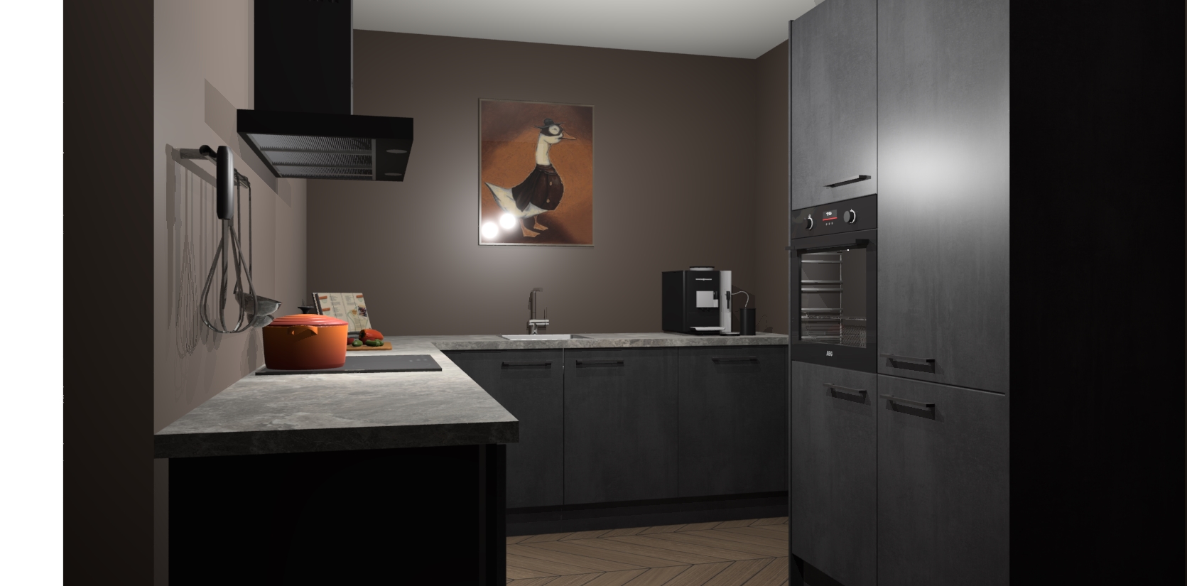 Met een modern, tijdloos design en ruime opslagruimte, zult u zich in no-time thuis voelen in uw nieuwe keuken. Uw leven wordt eenvoudiger met de soft-close deuren die voor het ultieme stille comfort zorgen - geen geluid dat u stoort terwijl u kookt. Ook is de keuken voorzien van 5 ingebouwde apparaten: een oven, inductie kookplaat, afzuigkap, vaatwasser en koelkast. Deze kunnen gemakkelijk na bestelling worden bijgewerkt naar AEG - waardoor uw luxe ervaring compleet is.