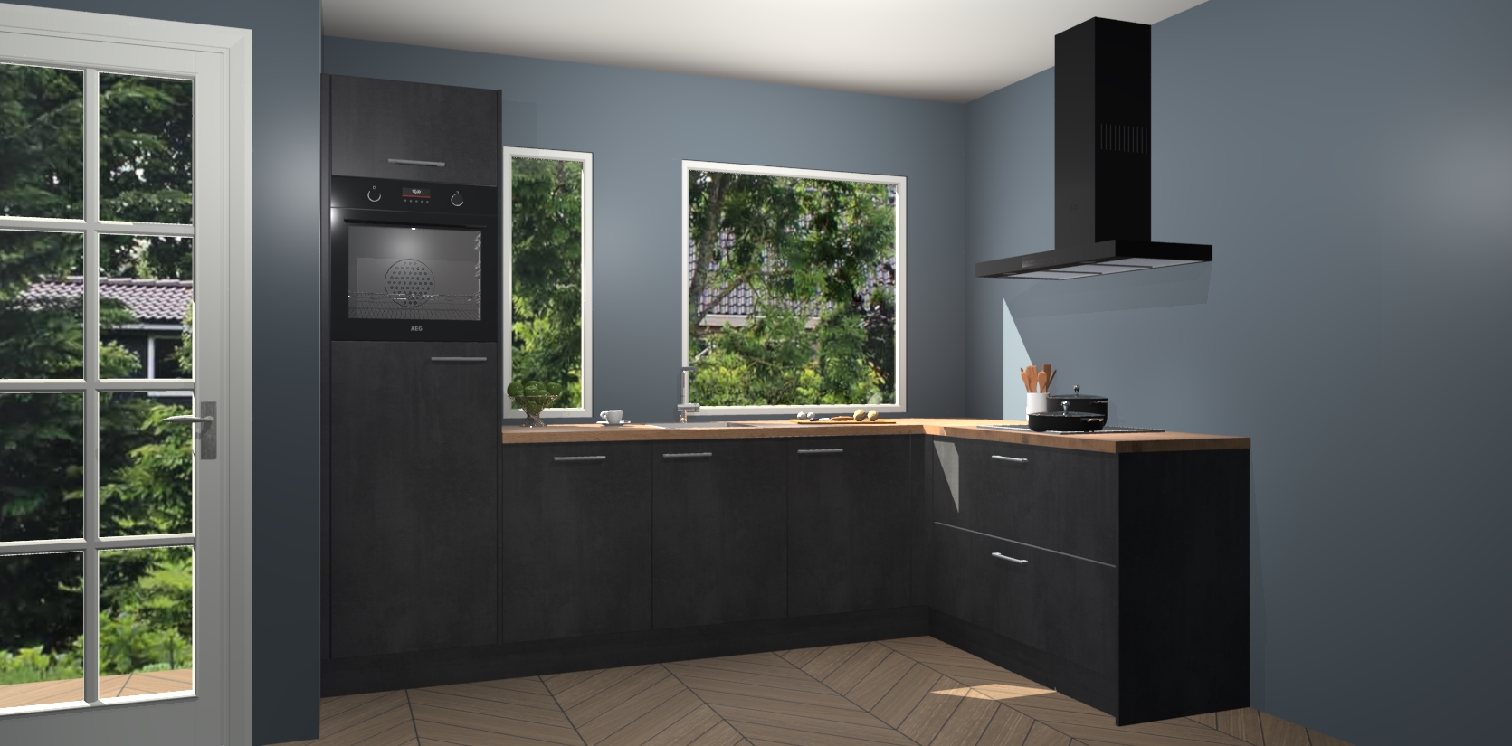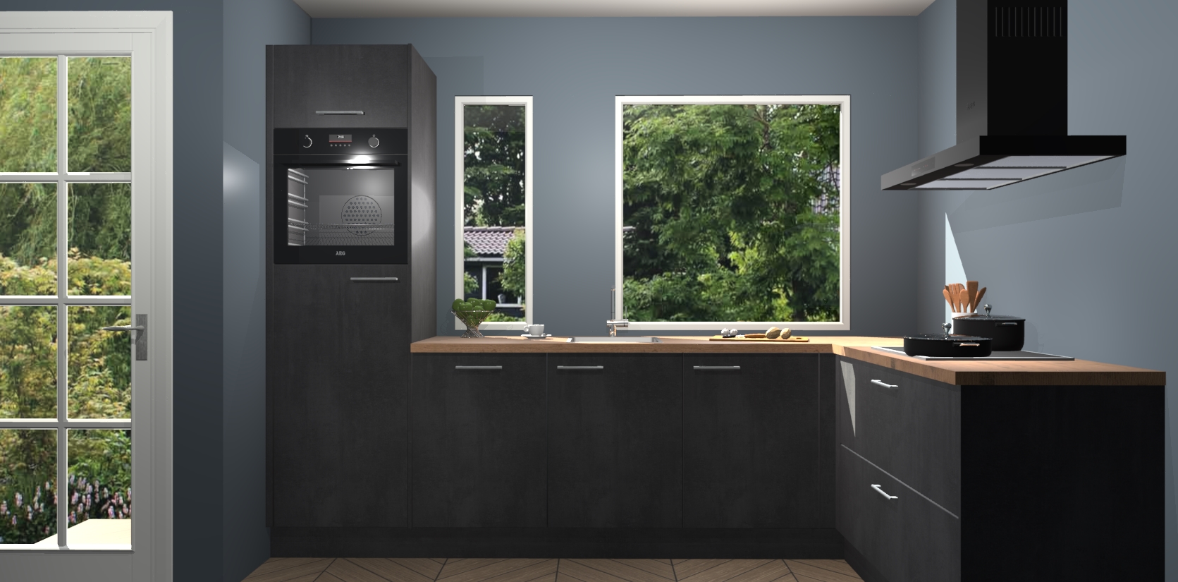 De beton zwarte keuken Cannes - de perfecte hoekkeuken voor elke ruimte! Onze combinatie van modern, tijdloos design en betrouwbare Duitse kwaliteit gecombineerd met een onverslaanbare prijs maken deze keuken een geweldige manier om uw huis te verbeteren en stijl toe te voegen.