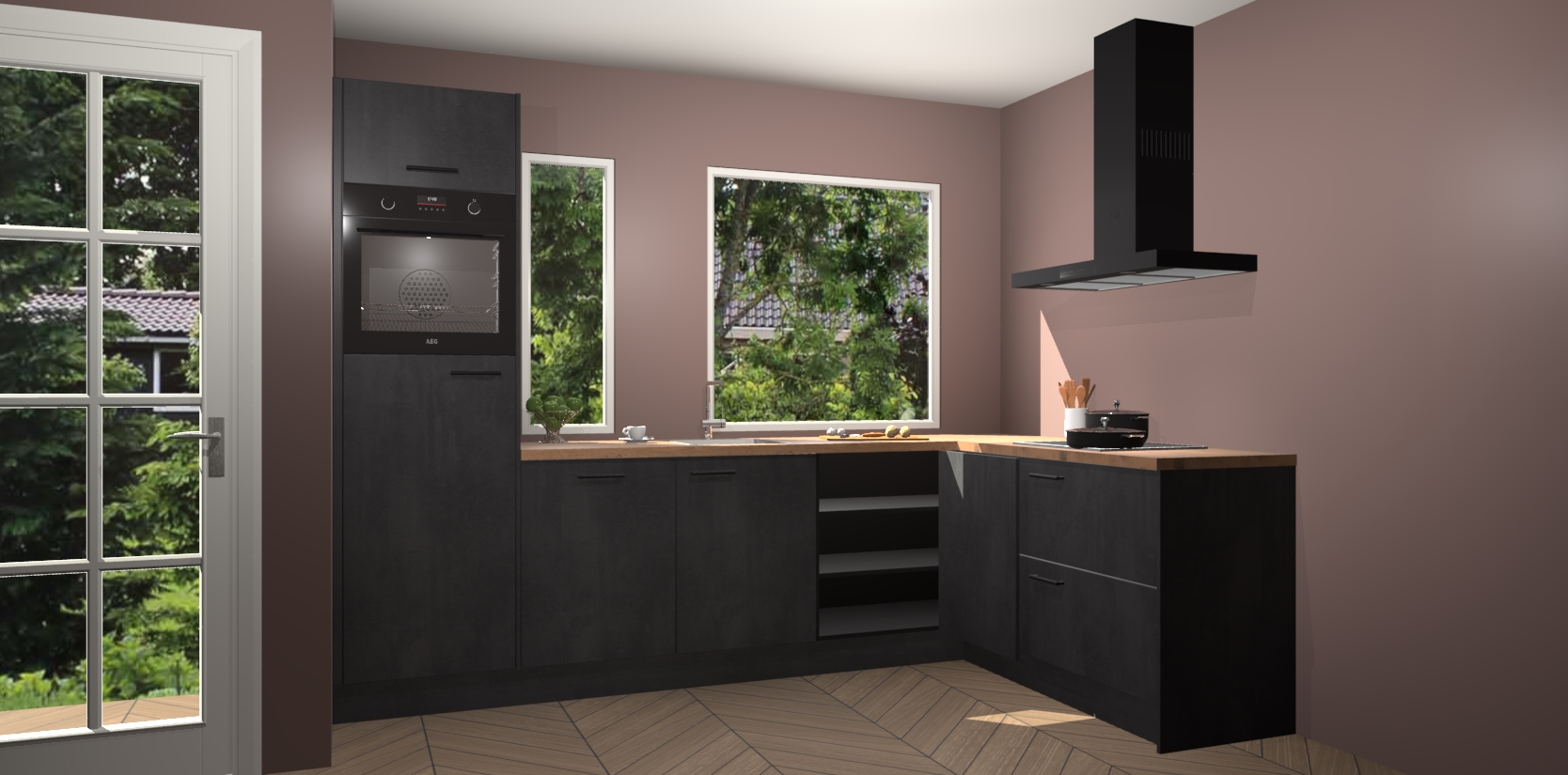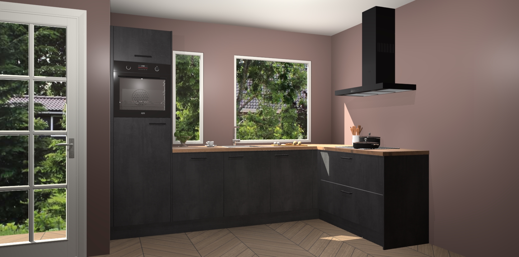 De beton zwarte keuken Cannes - de perfecte hoekkeuken voor elke ruimte! Onze combinatie van modern, tijdloos design en betrouwbare Duitse kwaliteit gecombineerd met een onverslaanbare prijs maken deze keuken een geweldige manier om uw huis te verbeteren en stijl toe te voegen.