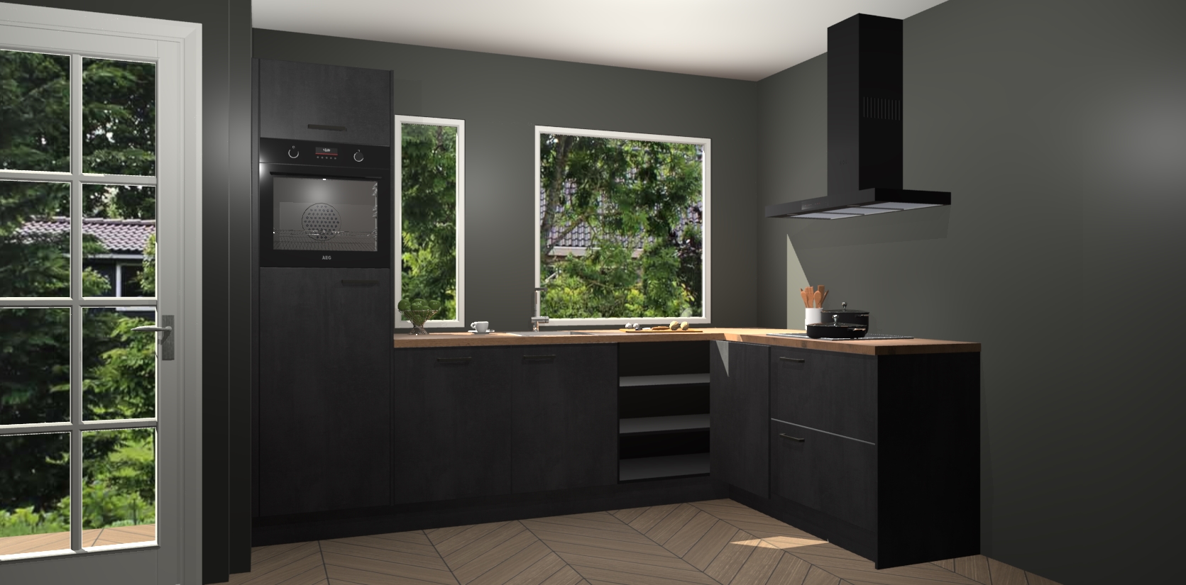De beton zwarte keuken Cannes - de perfecte hoekkeuken voor elke ruimte! Onze combinatie van modern, tijdloos design en betrouwbare Duitse kwaliteit gecombineerd met een onverslaanbare prijs maken deze keuken een geweldige manier om uw huis te verbeteren en stijl toe te voegen.