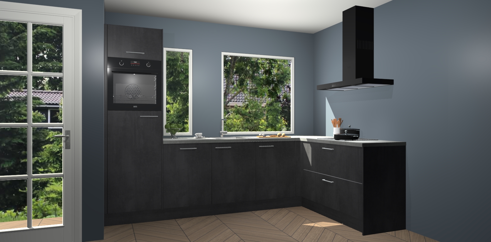 De beton zwarte keuken Cannes - de perfecte hoekkeuken voor elke ruimte! Onze combinatie van modern, tijdloos design en betrouwbare Duitse kwaliteit gecombineerd met een onverslaanbare prijs maken deze keuken een geweldige manier om uw huis te verbeteren en stijl toe te voegen.