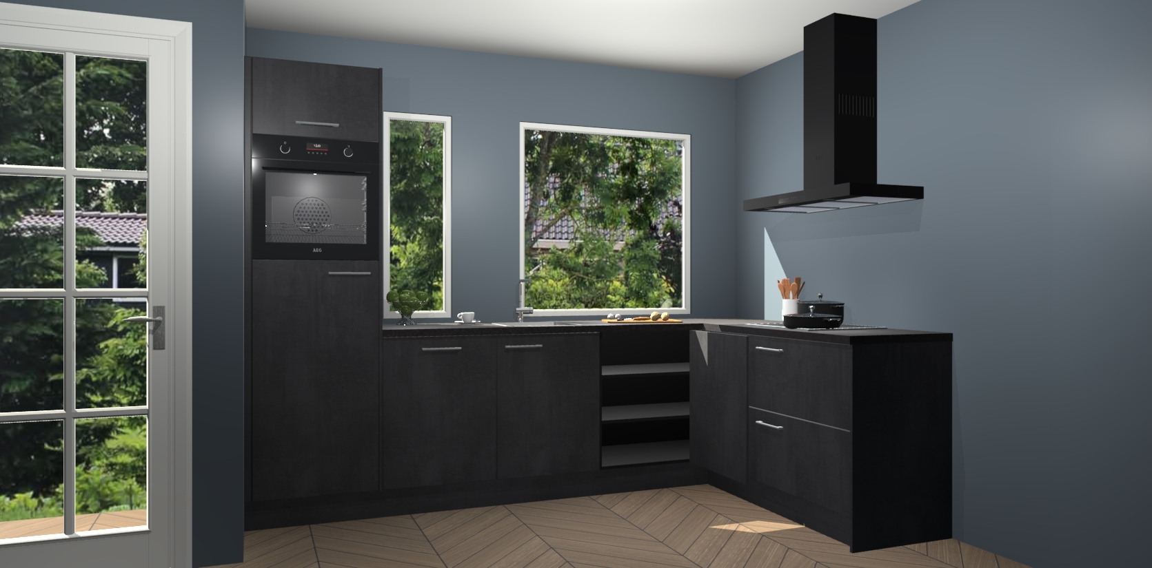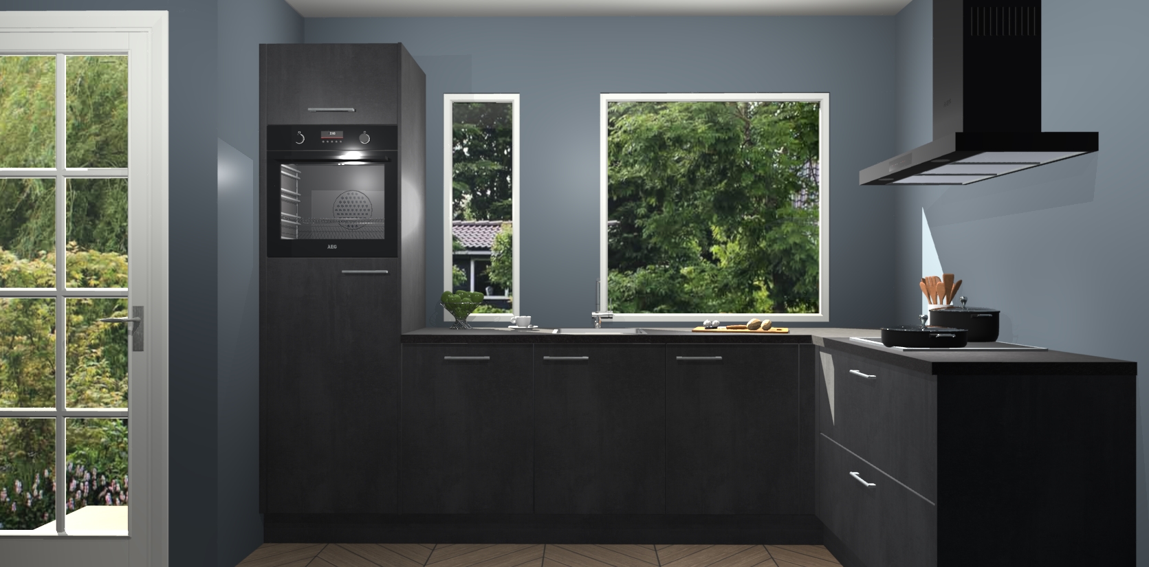 De beton zwarte keuken Cannes - de perfecte hoekkeuken voor elke ruimte! Onze combinatie van modern, tijdloos design en betrouwbare Duitse kwaliteit gecombineerd met een onverslaanbare prijs maken deze keuken een geweldige manier om uw huis te verbeteren en stijl toe te voegen.