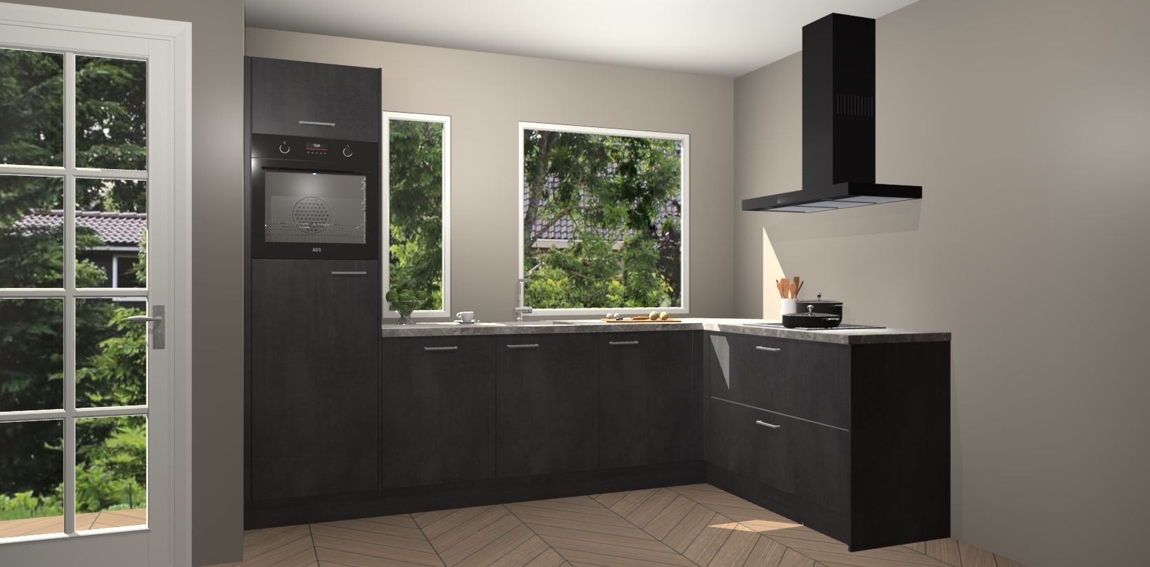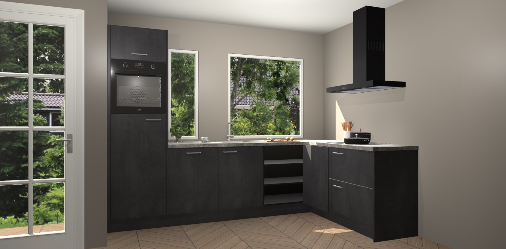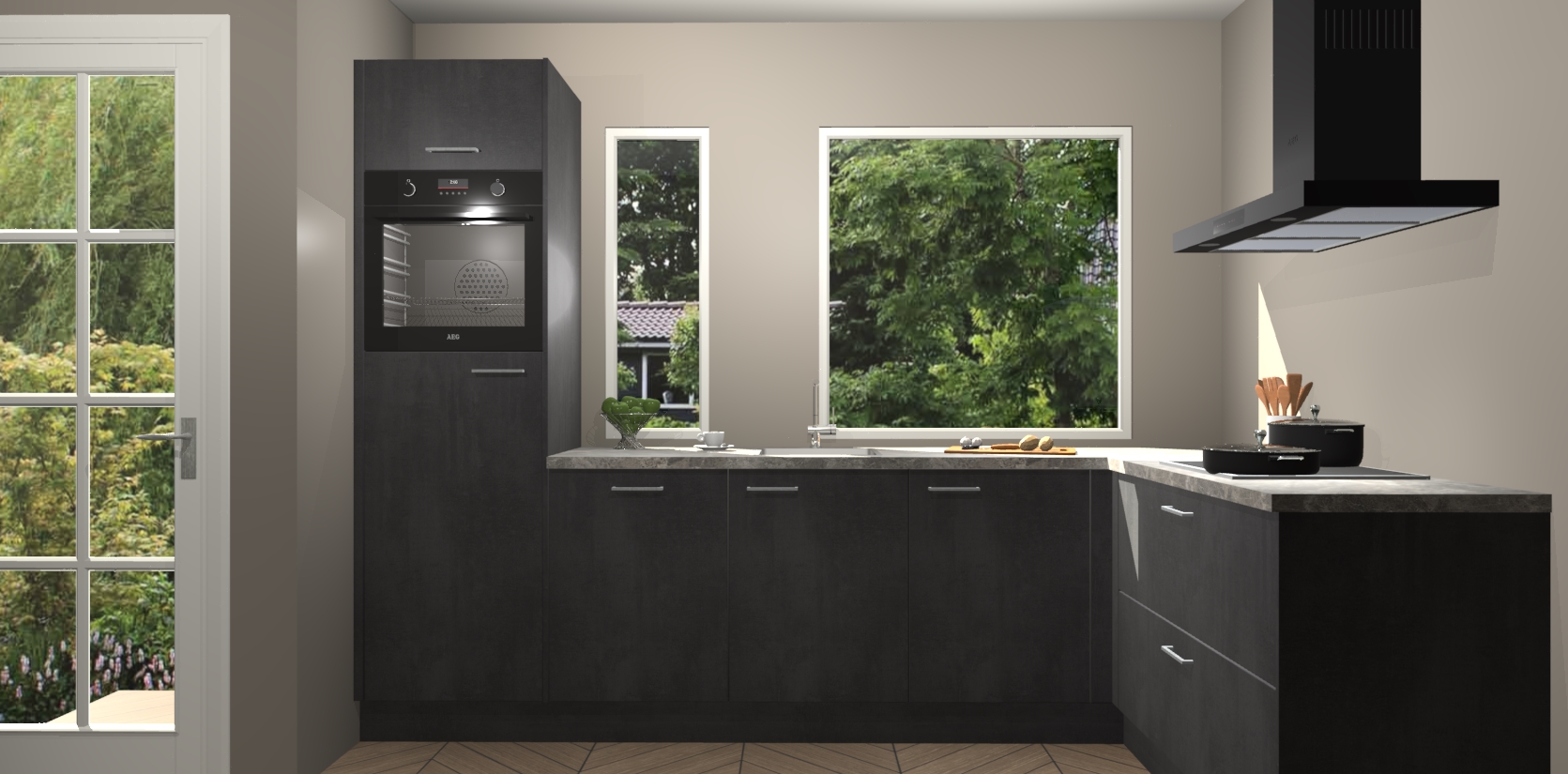 De beton zwarte keuken Cannes - de perfecte hoekkeuken voor elke ruimte! Onze combinatie van modern, tijdloos design en betrouwbare Duitse kwaliteit gecombineerd met een onverslaanbare prijs maken deze keuken een geweldige manier om uw huis te verbeteren en stijl toe te voegen.