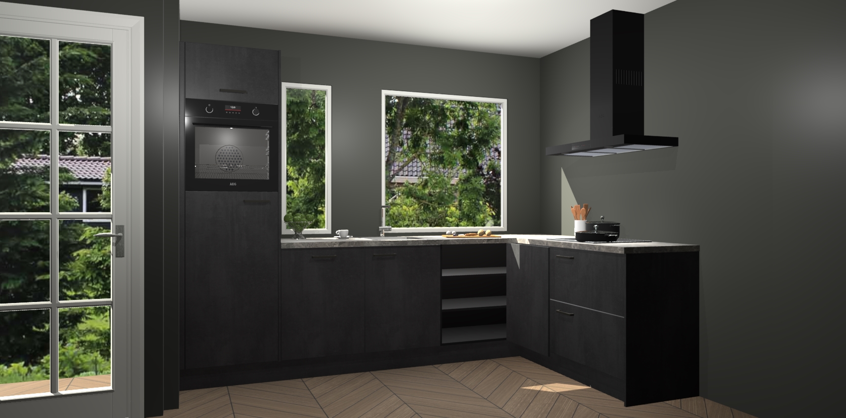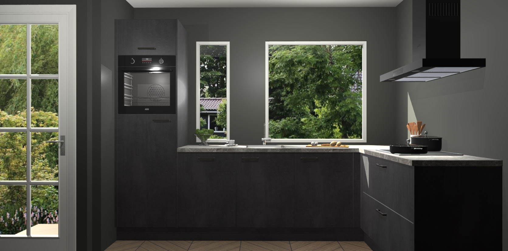 De beton zwarte keuken Cannes - de perfecte hoekkeuken voor elke ruimte! Onze combinatie van modern, tijdloos design en betrouwbare Duitse kwaliteit gecombineerd met een onverslaanbare prijs maken deze keuken een geweldige manier om uw huis te verbeteren en stijl toe te voegen.