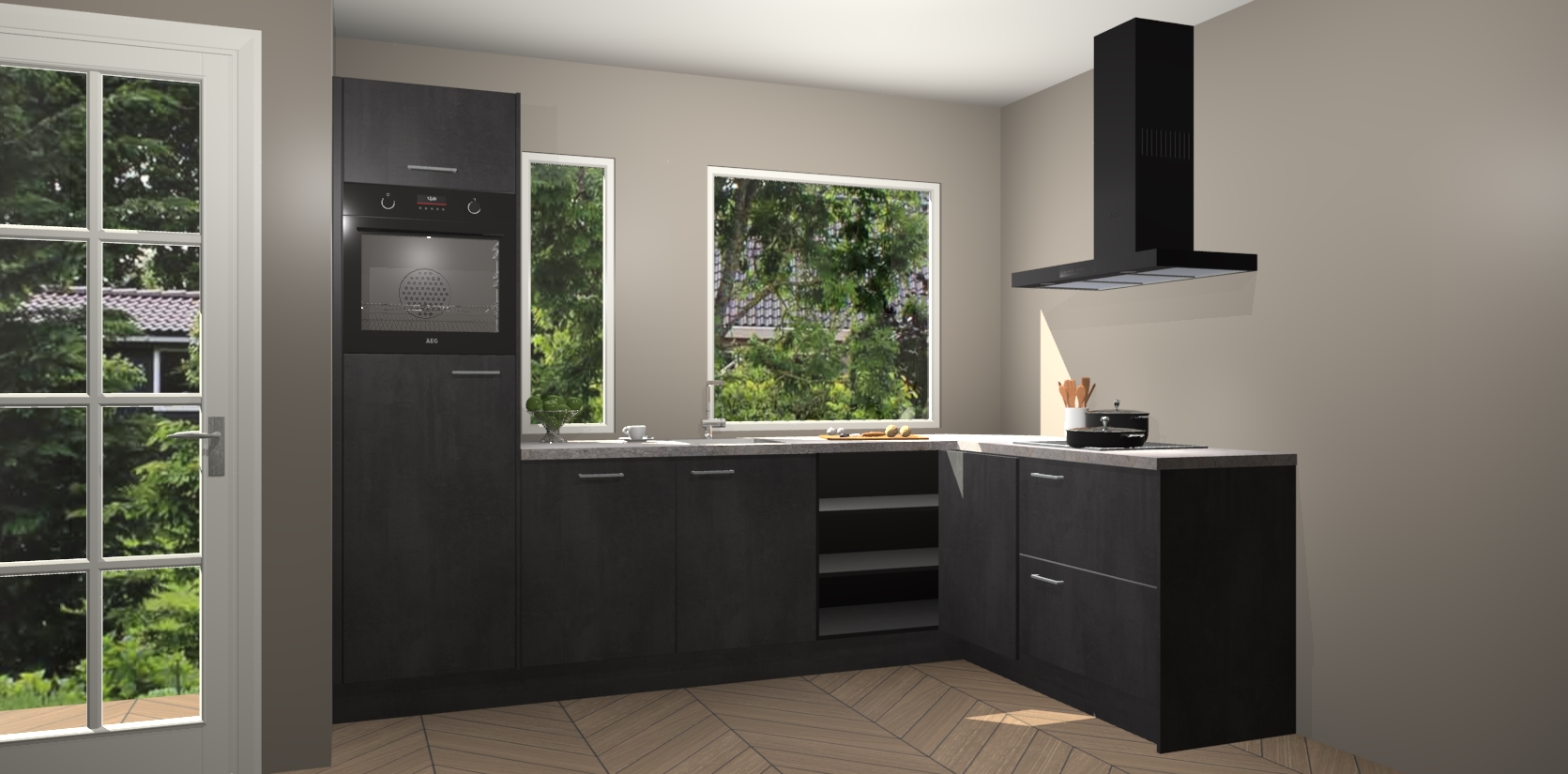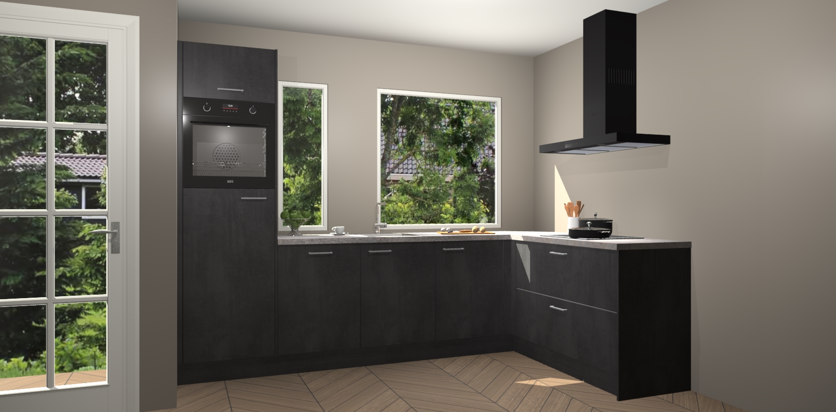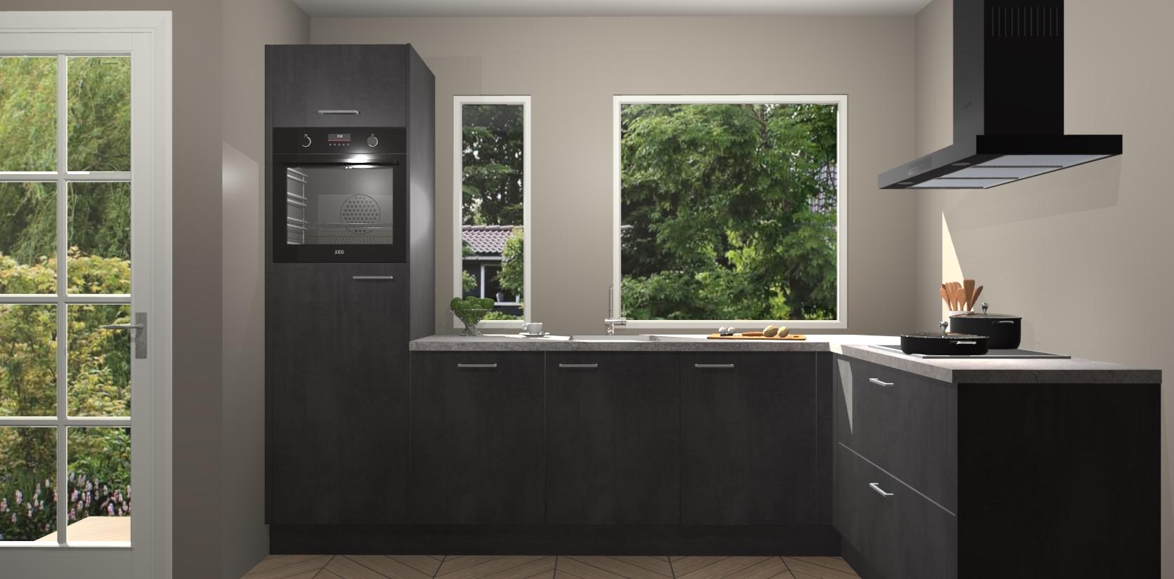 De beton zwarte keuken Cannes - de perfecte hoekkeuken voor elke ruimte! Onze combinatie van modern, tijdloos design en betrouwbare Duitse kwaliteit gecombineerd met een onverslaanbare prijs maken deze keuken een geweldige manier om uw huis te verbeteren en stijl toe te voegen.