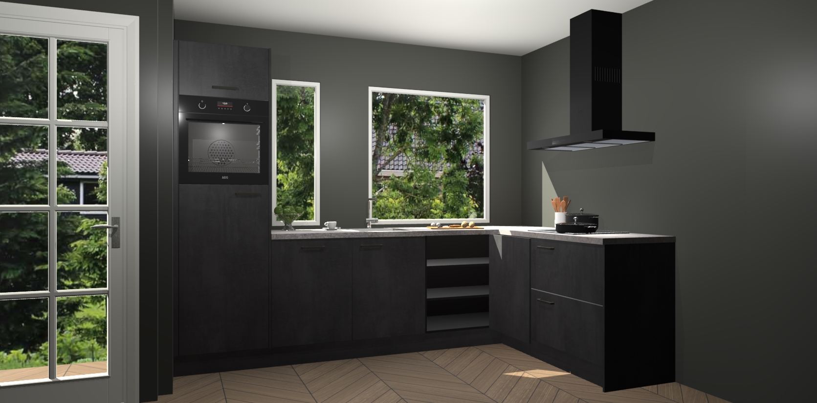 De beton zwarte keuken Cannes - de perfecte hoekkeuken voor elke ruimte! Onze combinatie van modern, tijdloos design en betrouwbare Duitse kwaliteit gecombineerd met een onverslaanbare prijs maken deze keuken een geweldige manier om uw huis te verbeteren en stijl toe te voegen.