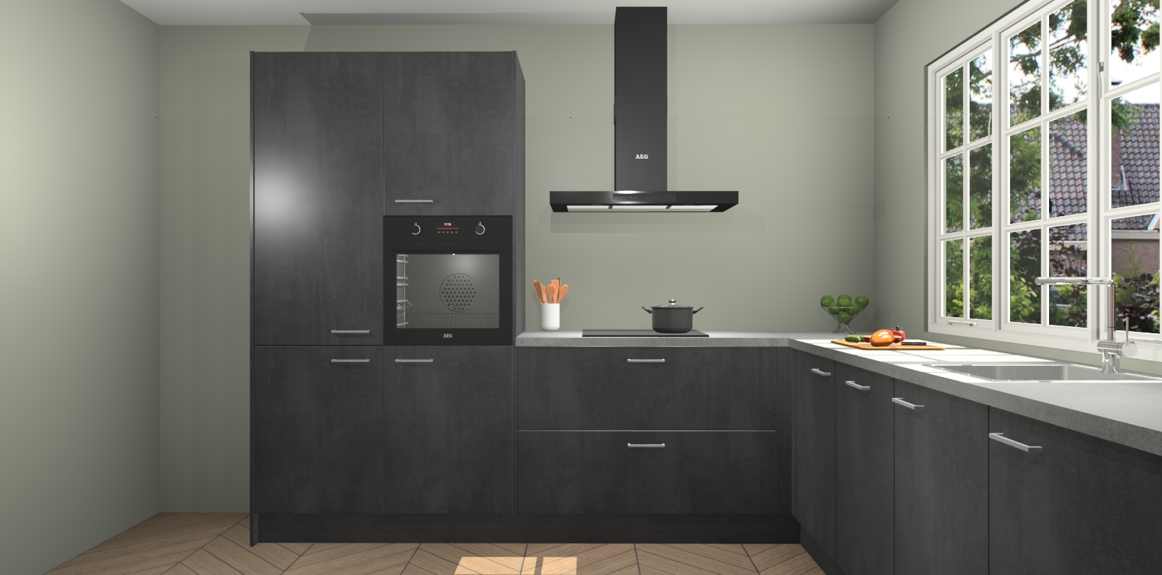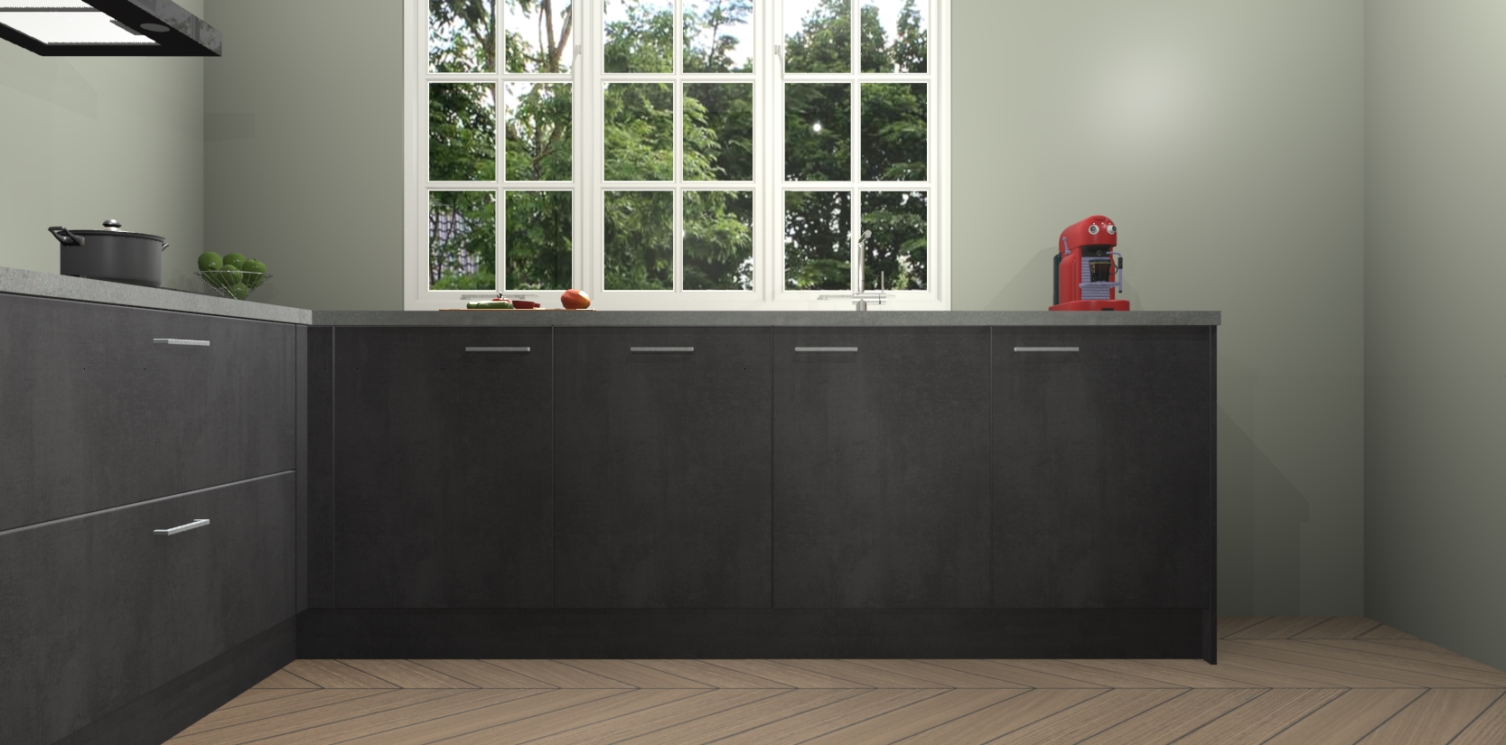 Welkom in de nieuwe wereld van een moderne keuken: de Beton Zwarte keuken Casablanca! Met dit innovatieve keukendesign haalt u de natuur naar binnen. Neem plaats aan uw hout-look keuken en voel u verbonden met de prachtige Beton Zwarte kleur. Zeer gebruiksvriendelijk, ervaring door prettige materialen en kleur die perfect aansluiten bij uw sfeerkeuze in huis.