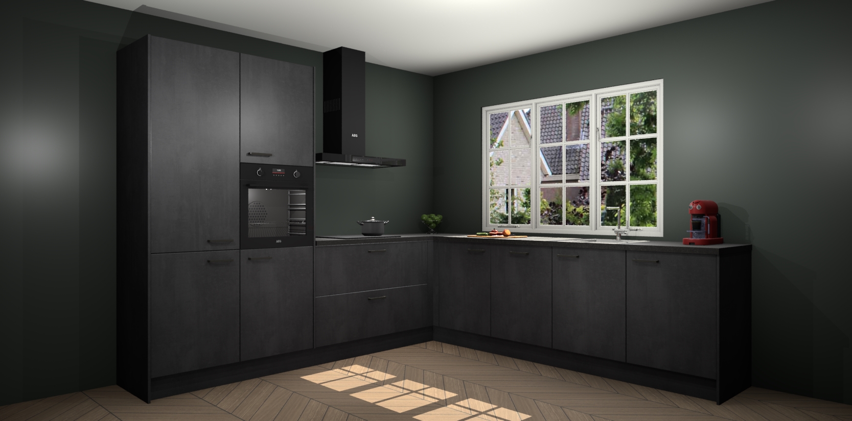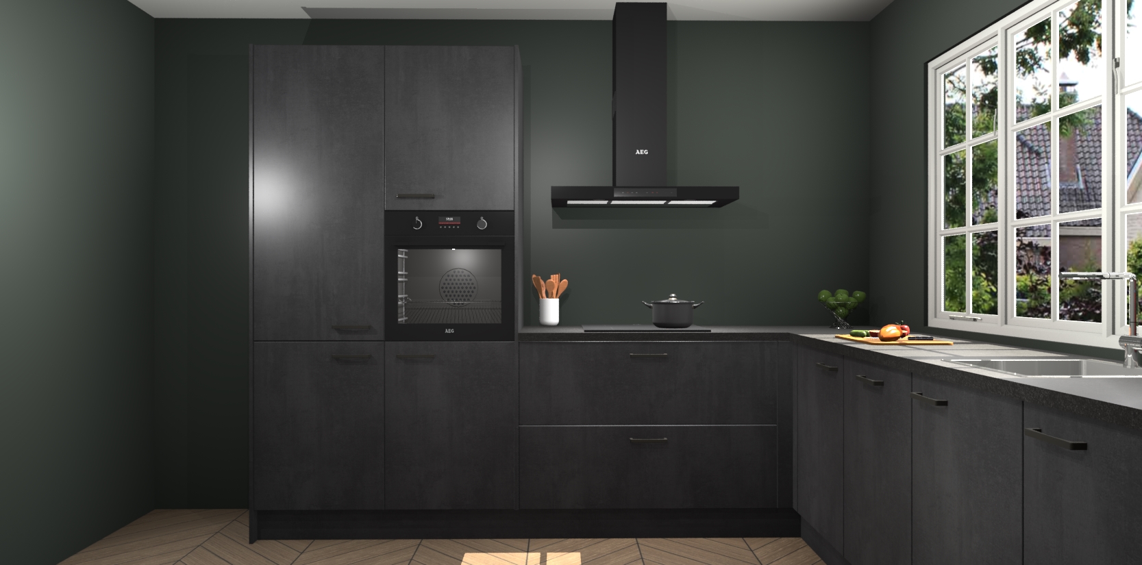 Welkom in de nieuwe wereld van een moderne keuken: de Beton Zwarte keuken Casablanca! Met dit innovatieve keukendesign haalt u de natuur naar binnen. Neem plaats aan uw hout-look keuken en voel u verbonden met de prachtige Beton Zwarte kleur. Zeer gebruiksvriendelijk, ervaring door prettige materialen en kleur die perfect aansluiten bij uw sfeerkeuze in huis.