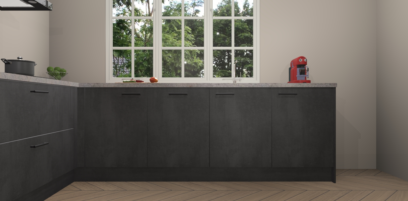 Welkom in de nieuwe wereld van een moderne keuken: de Beton Zwarte keuken Casablanca! Met dit innovatieve keukendesign haalt u de natuur naar binnen. Neem plaats aan uw hout-look keuken en voel u verbonden met de prachtige Beton Zwarte kleur. Zeer gebruiksvriendelijk, ervaring door prettige materialen en kleur die perfect aansluiten bij uw sfeerkeuze in huis.