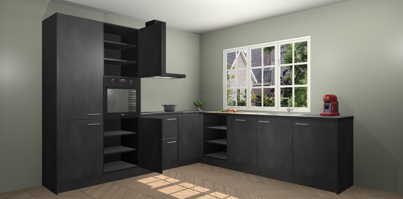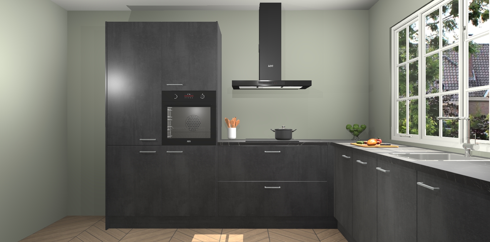 Welkom in de nieuwe wereld van een moderne keuken: de Beton Zwarte keuken Casablanca! Met dit innovatieve keukendesign haalt u de natuur naar binnen. Neem plaats aan uw hout-look keuken en voel u verbonden met de prachtige Beton Zwarte kleur. Zeer gebruiksvriendelijk, ervaring door prettige materialen en kleur die perfect aansluiten bij uw sfeerkeuze in huis.