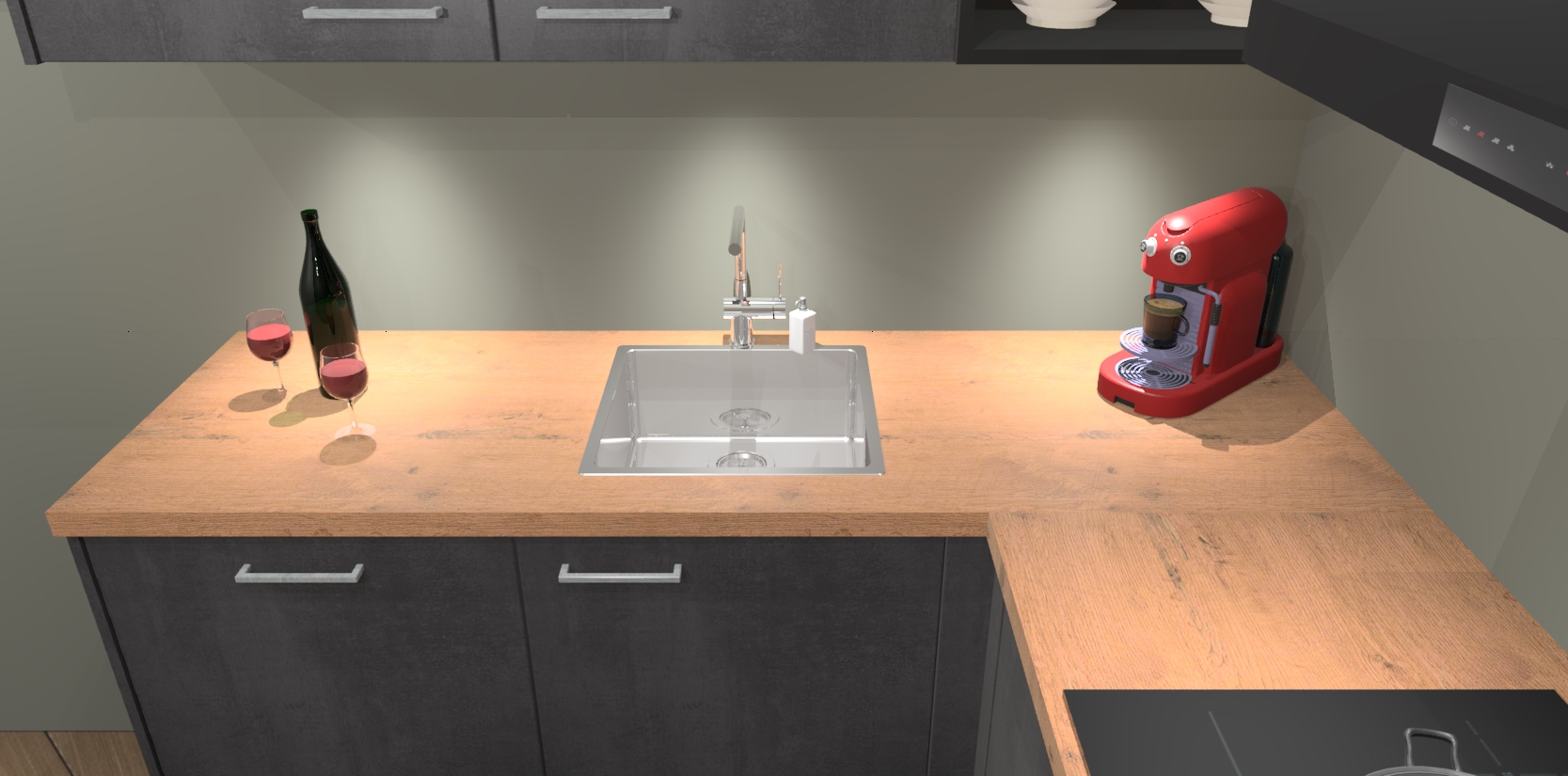 - Bij een hoekwerkblad zijn de hoeken in gevreesd en op maat gemaakt