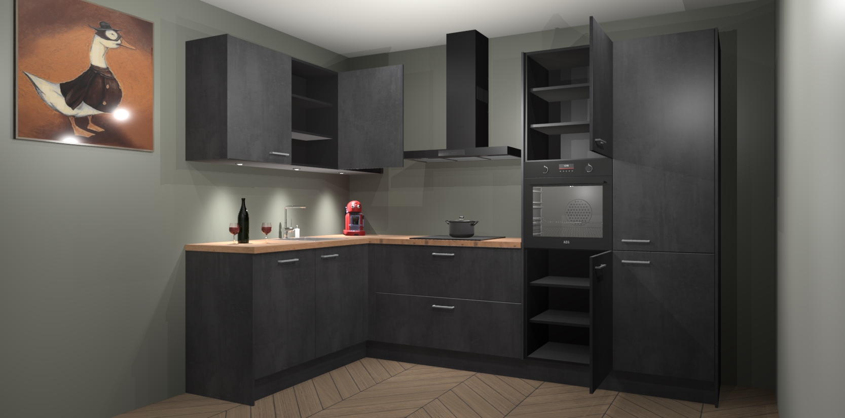 De Beton Zwarte keuken Cognac gaat alleen maar om de beste keukenervaring. Kies gewoon de beste apparatuur en ongeëvenaarde Duitse constructie die u thuis wilt hebben en verander uw huiskamer hartelijkheid meteen in professionaliteit. Laat de toon weten dat u gemakkelijk kan genieten van alle luxe die u verdiend? Bestel nu de Beton Zwarte keuken Cognac voor bij u thuis!