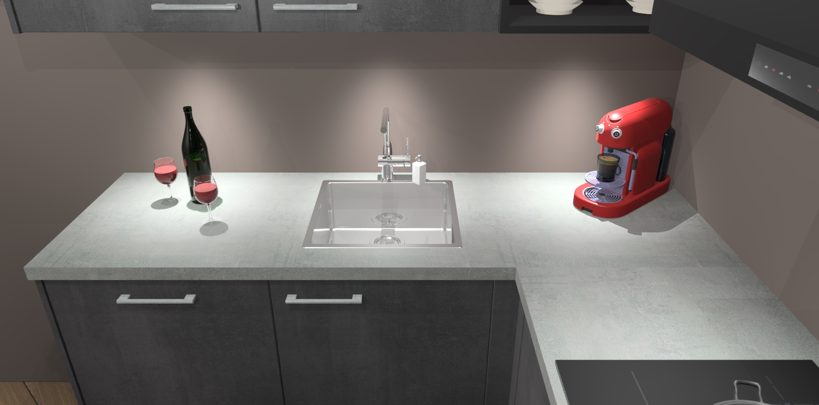 • Bij een hoekwerkblad zijn de hoeken in gevreesd en op maat gemaakt
