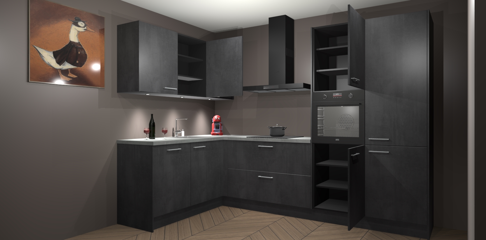 De Beton Zwarte keuken Cognac gaat alleen maar om de beste keukenervaring. Kies gewoon de beste apparatuur en ongeëvenaarde Duitse constructie die u thuis wilt hebben en verander uw huiskamer hartelijkheid meteen in professionaliteit. Laat de toon weten dat u gemakkelijk kan genieten van alle luxe die u verdiend? Bestel nu de Beton Zwarte keuken Cognac voor bij u thuis!