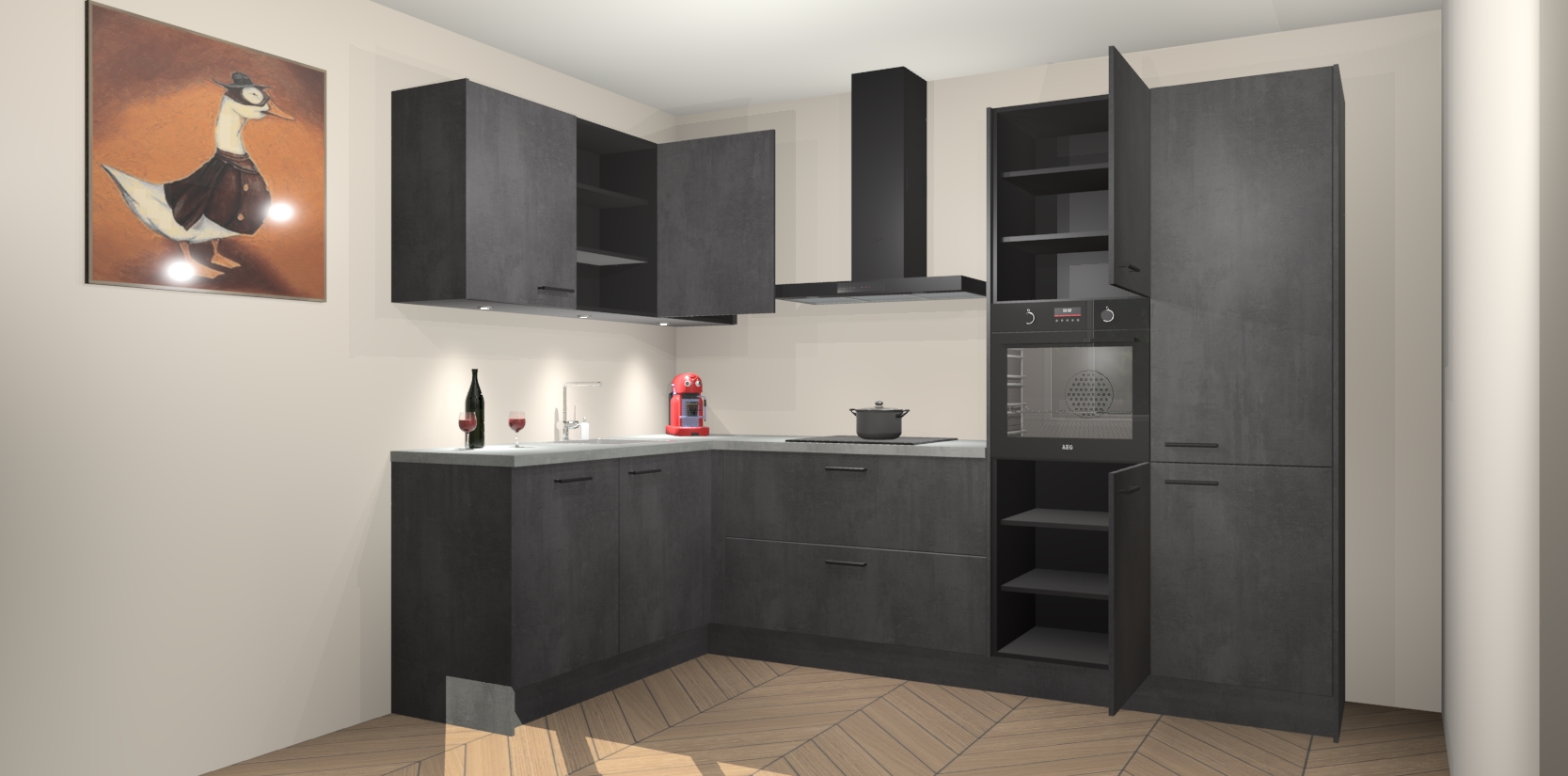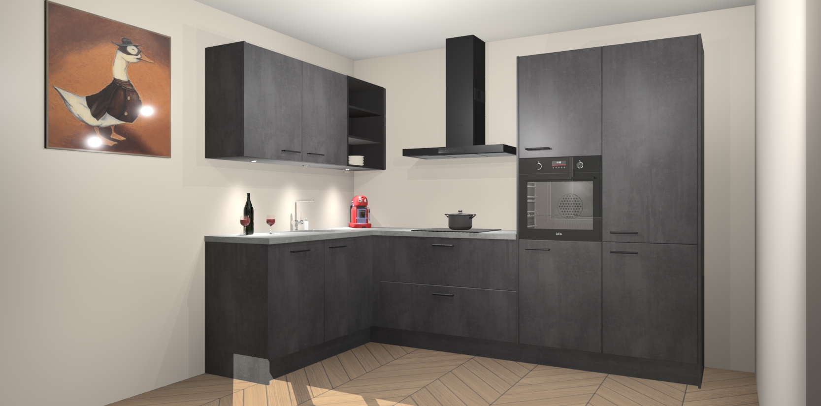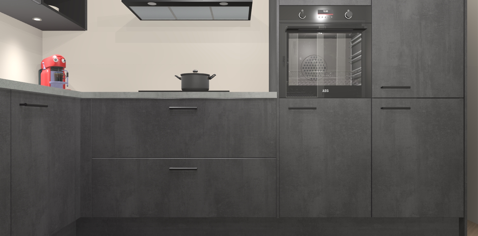 De Beton Zwarte keuken Cognac is een adembenemend ontwerp met een modern en tijdloos uiterlijk. Deze luxe keuken straalt echt aristocratisch uit, waardoor uw koken plezieriger zal worden! Het prachtige design begint bij de hoekkeuken, wat perfect past bij elk type interieur. Bovendien bevat deze hoogwaardige set vijf inbouwapparaten - van oven tot koelkast - die via bestelling naar AEG geüpgraded kunnen worden!