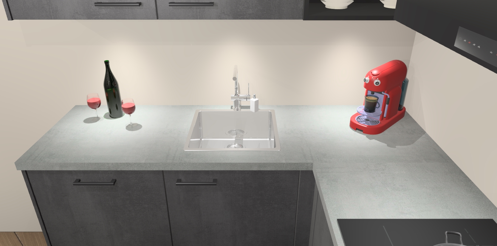- Bij een hoekwerkblad zijn de hoeken in gevreesd en op maat gemaakt