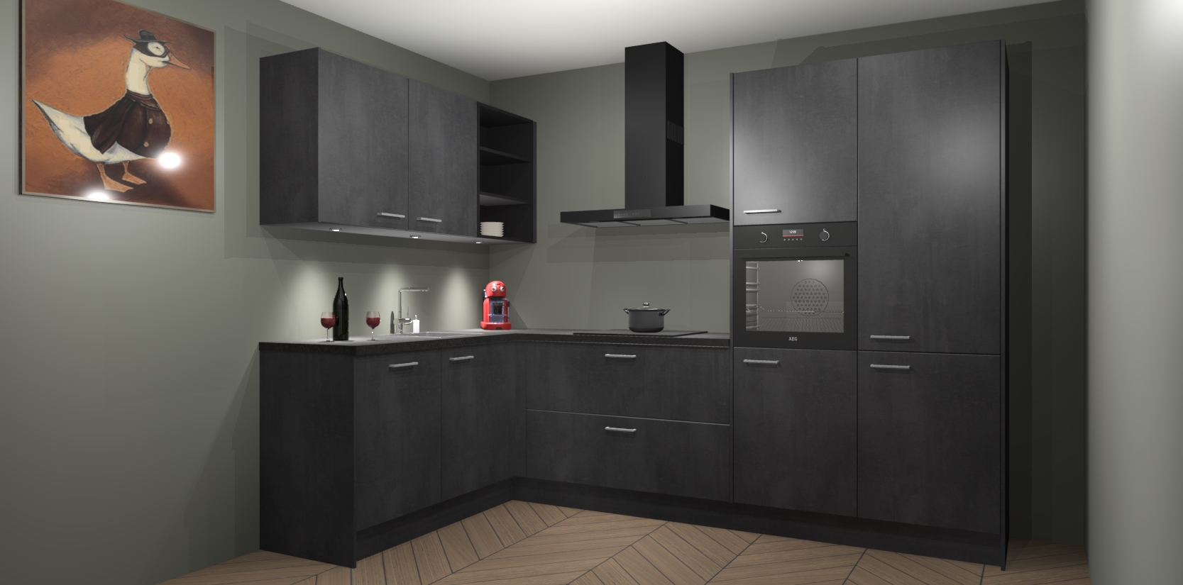 De Beton Zwarte keuken Cognac is een adembenemend ontwerp met een modern en tijdloos uiterlijk. Deze luxe keuken straalt echt aristocratisch uit, waardoor uw koken plezieriger zal worden! Het prachtige design begint bij de hoekkeuken, wat perfect past bij elk type interieur. Bovendien bevat deze hoogwaardige set vijf inbouwapparaten - van oven tot koelkast - die via bestelling naar AEG geüpgraded kunnen worden!