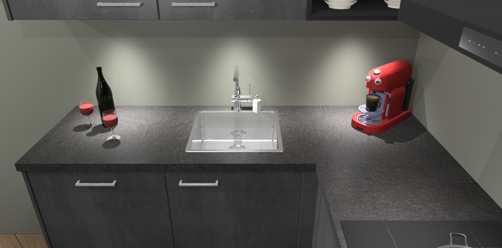 - Bij een hoekwerkblad zijn de hoeken in gevreesd en op maat gemaakt