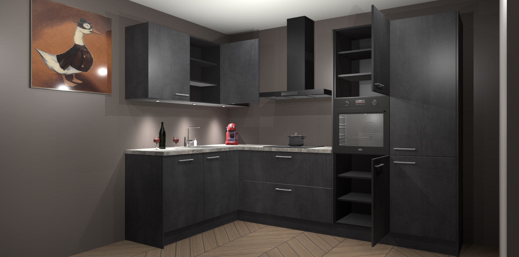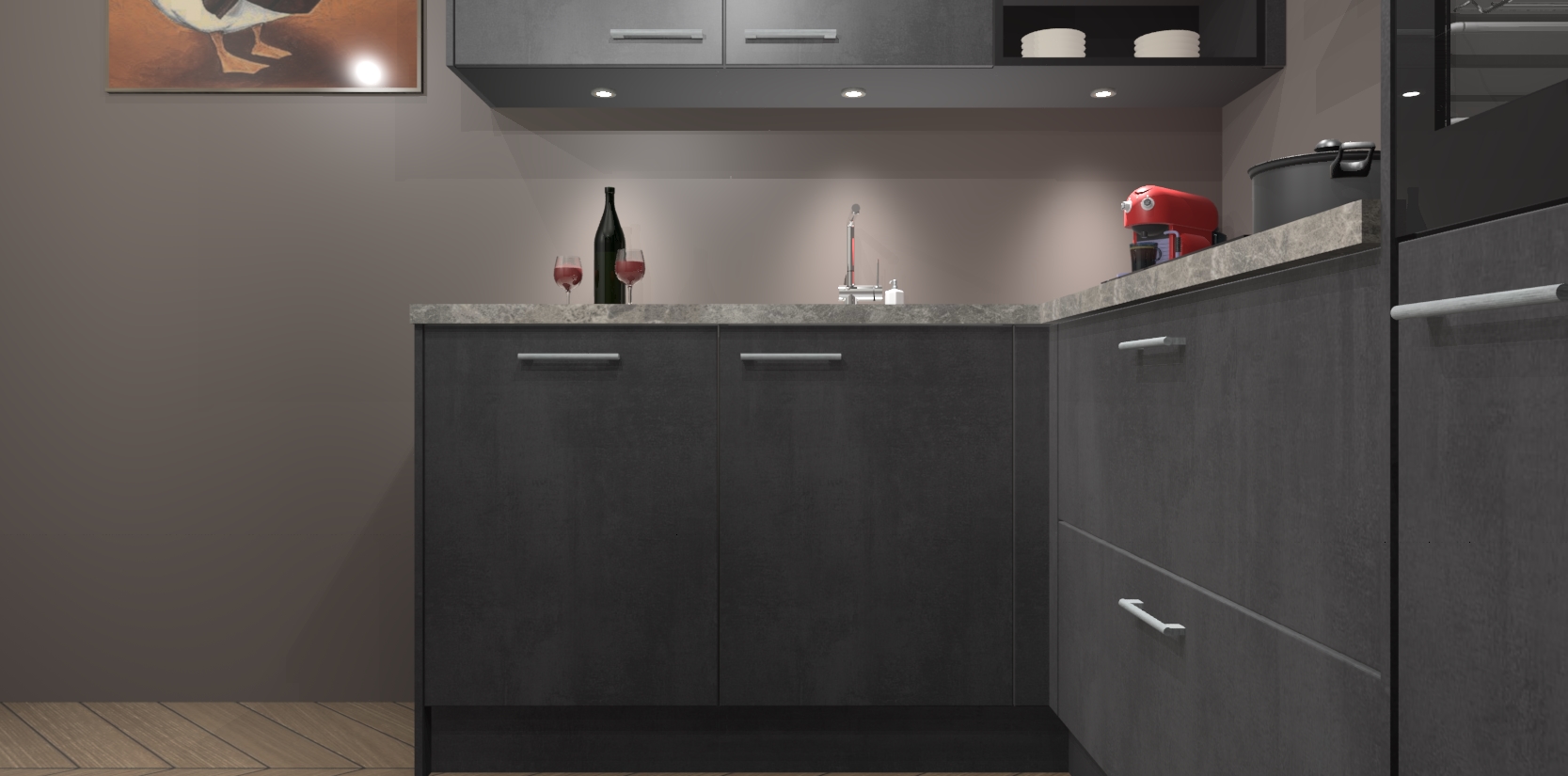 De Beton Zwarte keuken Cognac gaat alleen maar om de beste keukenervaring. Kies gewoon de beste apparatuur en ongeëvenaarde Duitse constructie die u thuis wilt hebben en verander uw huiskamer hartelijkheid meteen in professionaliteit. Laat de toon weten dat u gemakkelijk kan genieten van alle luxe die u verdiend? Bestel nu de Beton Zwarte keuken Cognac voor bij u thuis!