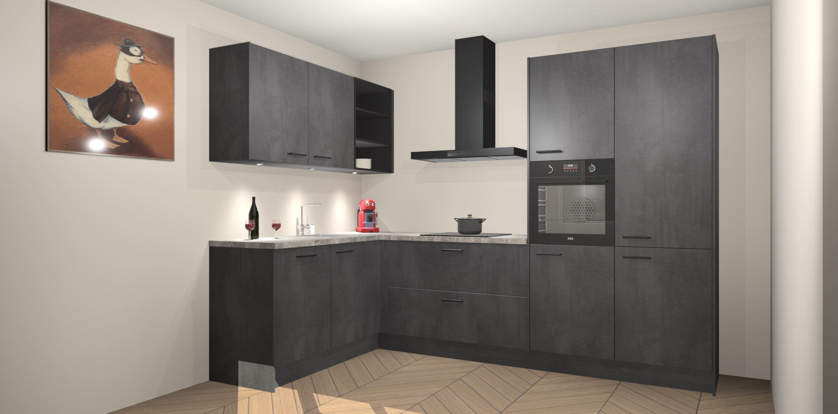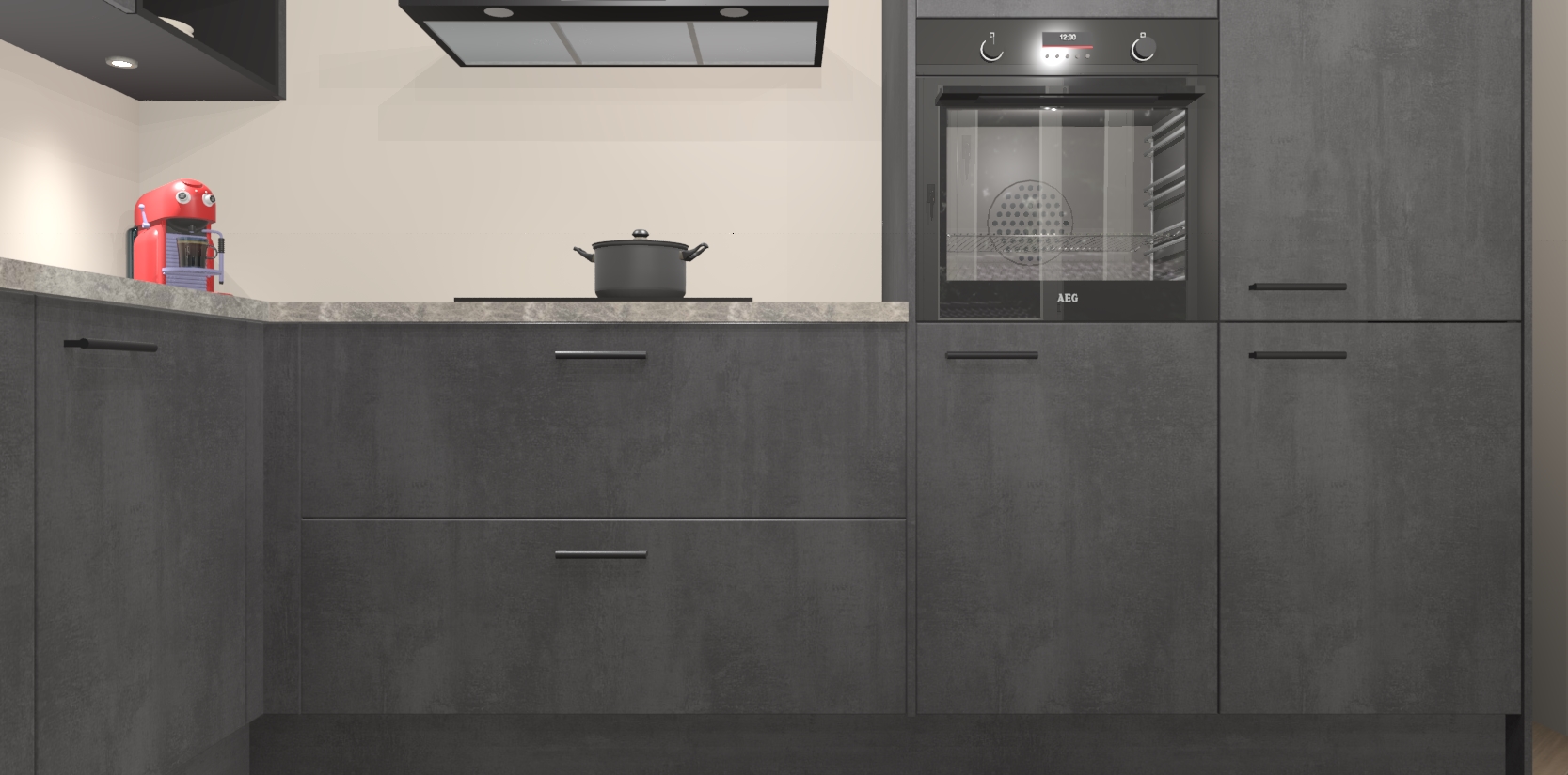 De Beton Zwarte keuken Cognac is een adembenemend ontwerp met een modern en tijdloos uiterlijk. Deze luxe keuken straalt echt aristocratisch uit, waardoor uw koken plezieriger zal worden! Het prachtige design begint bij de hoekkeuken, wat perfect past bij elk type interieur. Bovendien bevat deze hoogwaardige set vijf inbouwapparaten - van oven tot koelkast - die via bestelling naar AEG geüpgraded kunnen worden!