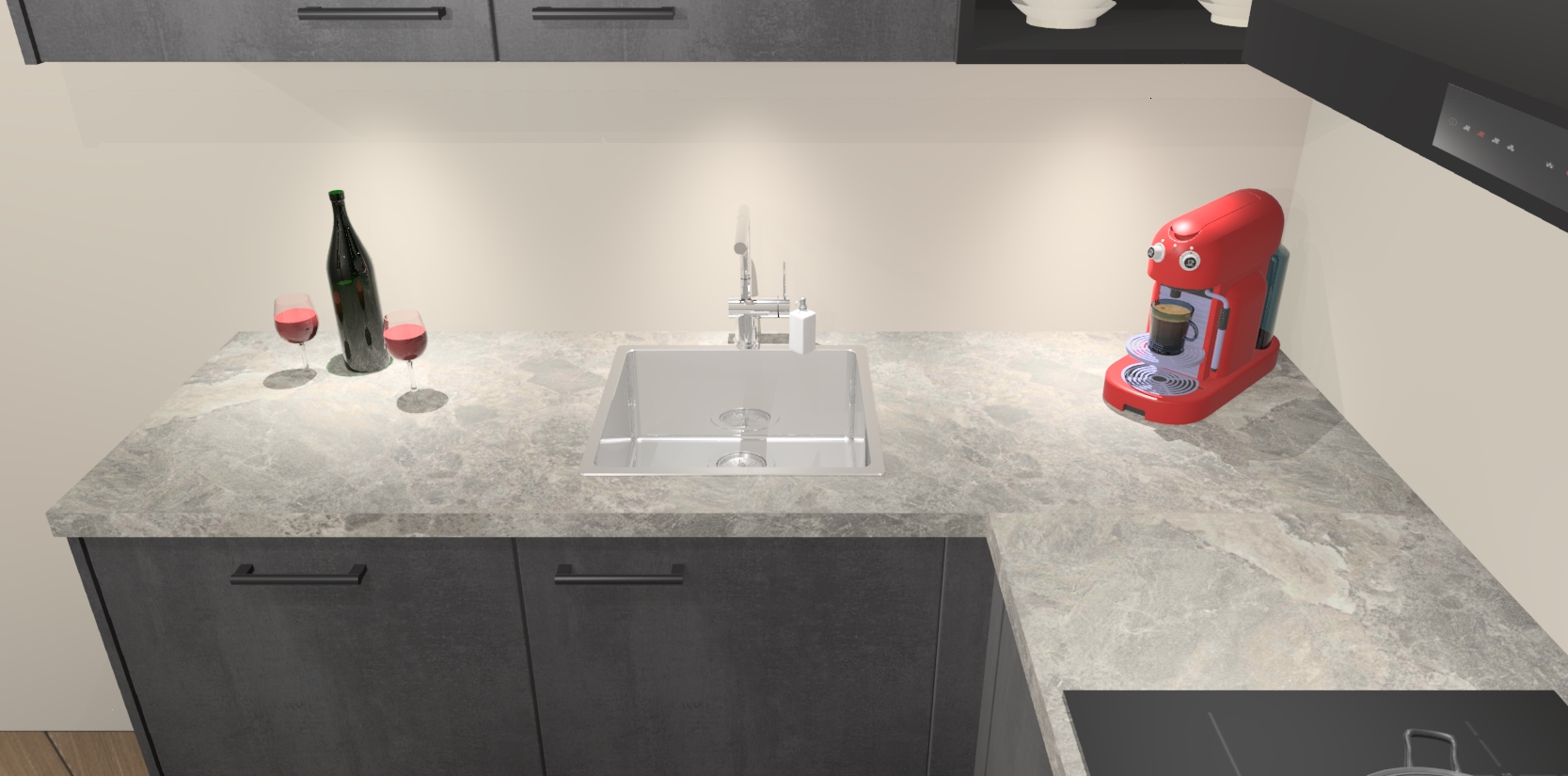 - Bij een hoekwerkblad zijn de hoeken in gevreesd en op maat gemaakt
