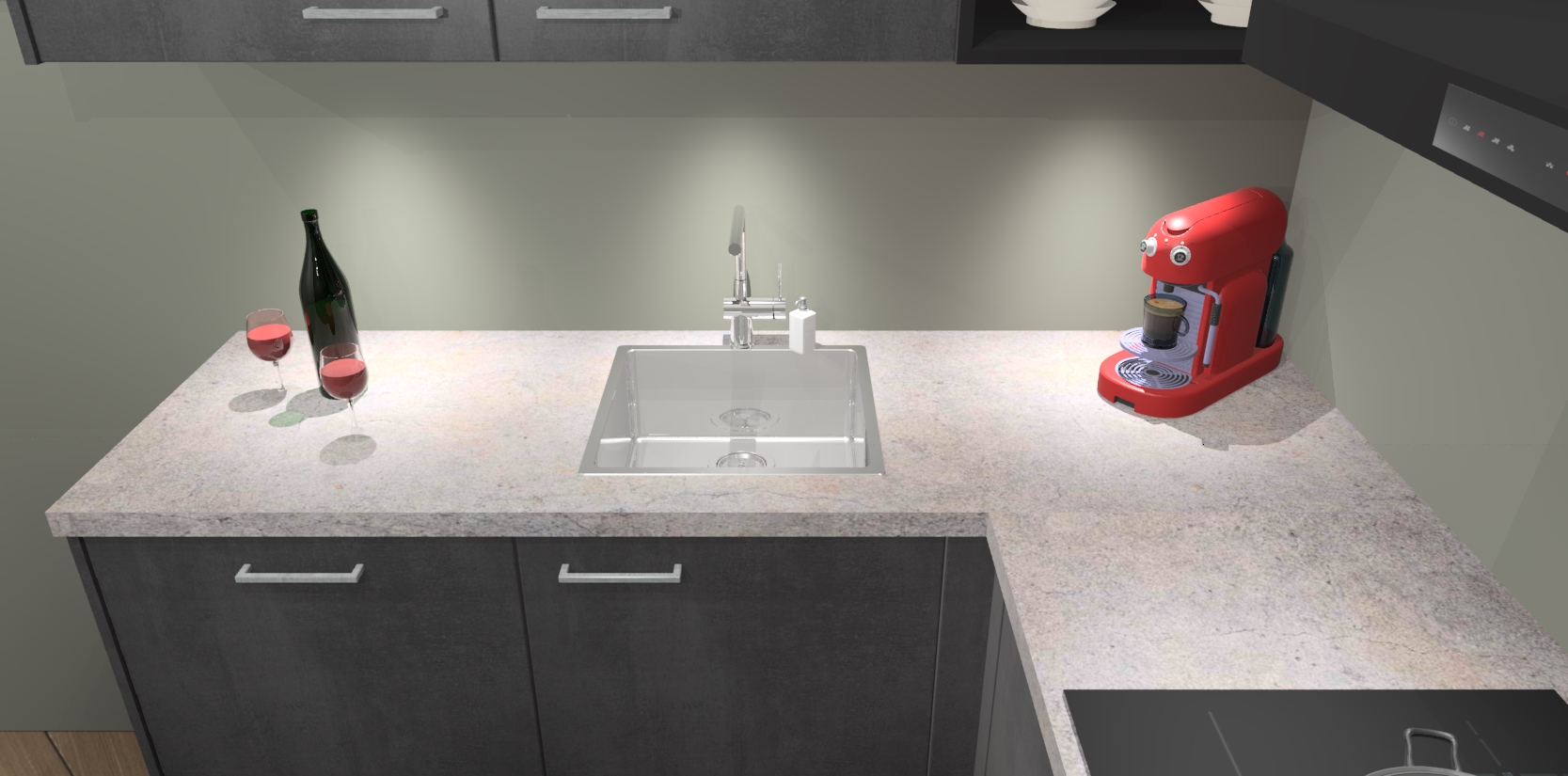 - Bij een hoekwerkblad zijn de hoeken in gevreesd en op maat gemaakt