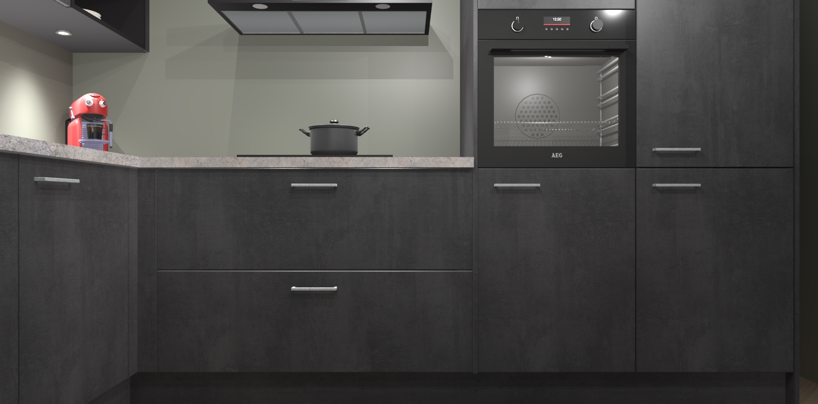 De Beton Zwarte keuken Cognac is een adembenemend ontwerp met een modern en tijdloos uiterlijk. Deze luxe keuken straalt echt aristocratisch uit, waardoor uw koken plezieriger zal worden! Het prachtige design begint bij de hoekkeuken, wat perfect past bij elk type interieur. Bovendien bevat deze hoogwaardige set vijf inbouwapparaten - van oven tot koelkast - die via bestelling naar AEG geüpgraded kunnen worden!