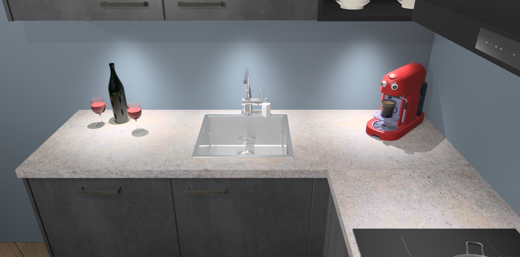 - Bij een hoekwerkblad zijn de hoeken in gevreesd en op maat gemaakt