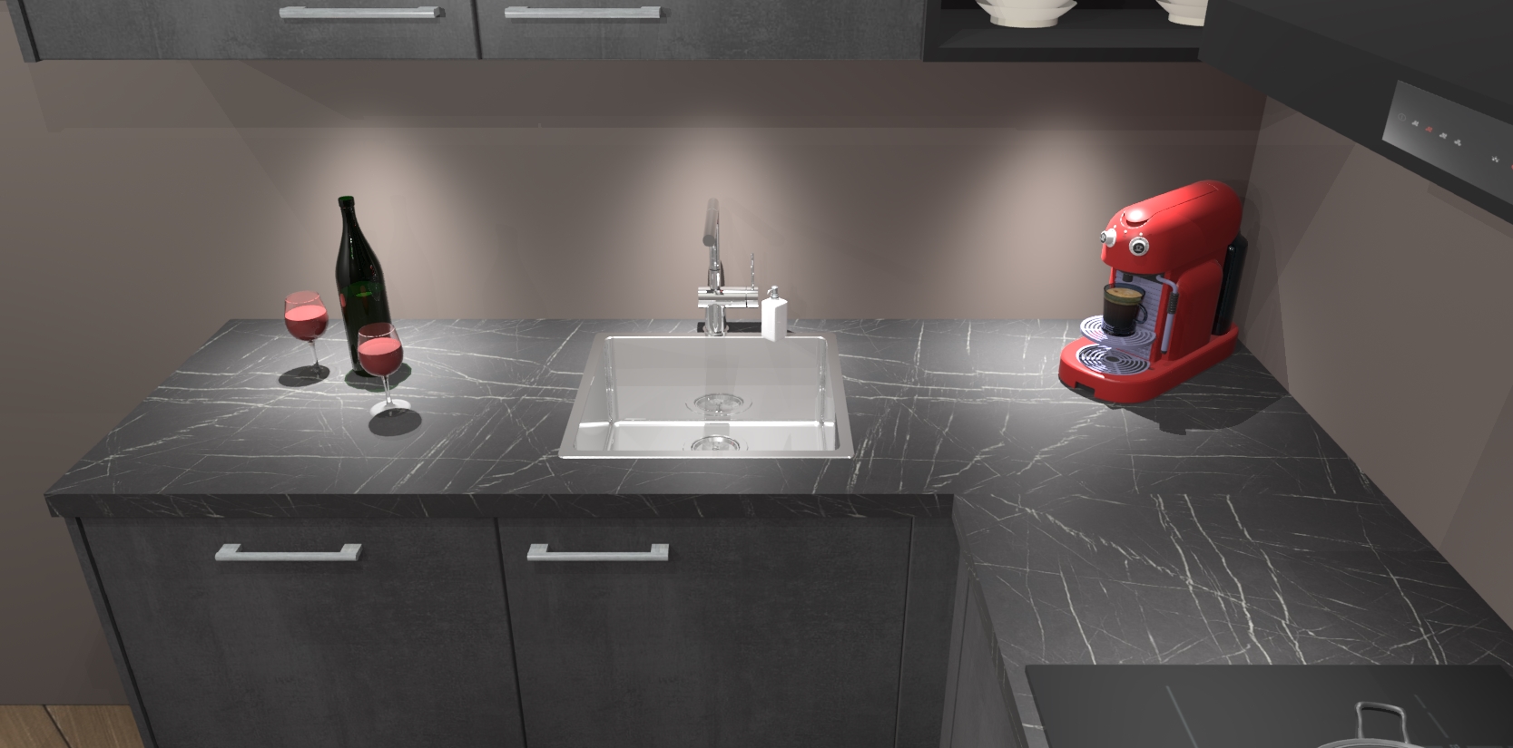 - Bij een hoekwerkblad zijn de hoeken in gevreesd en op maat gemaakt