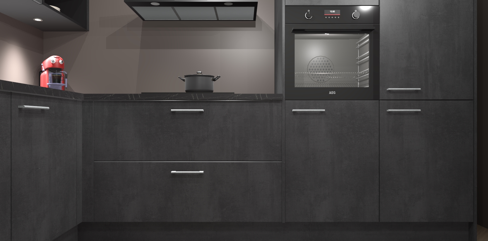De Beton Zwarte keuken Cognac is een adembenemend ontwerp met een modern en tijdloos uiterlijk. Deze luxe keuken straalt echt aristocratisch uit, waardoor uw koken plezieriger zal worden! Het prachtige design begint bij de hoekkeuken, wat perfect past bij elk type interieur. Bovendien bevat deze hoogwaardige set vijf inbouwapparaten - van oven tot koelkast - die via bestelling naar AEG geüpgraded kunnen worden!