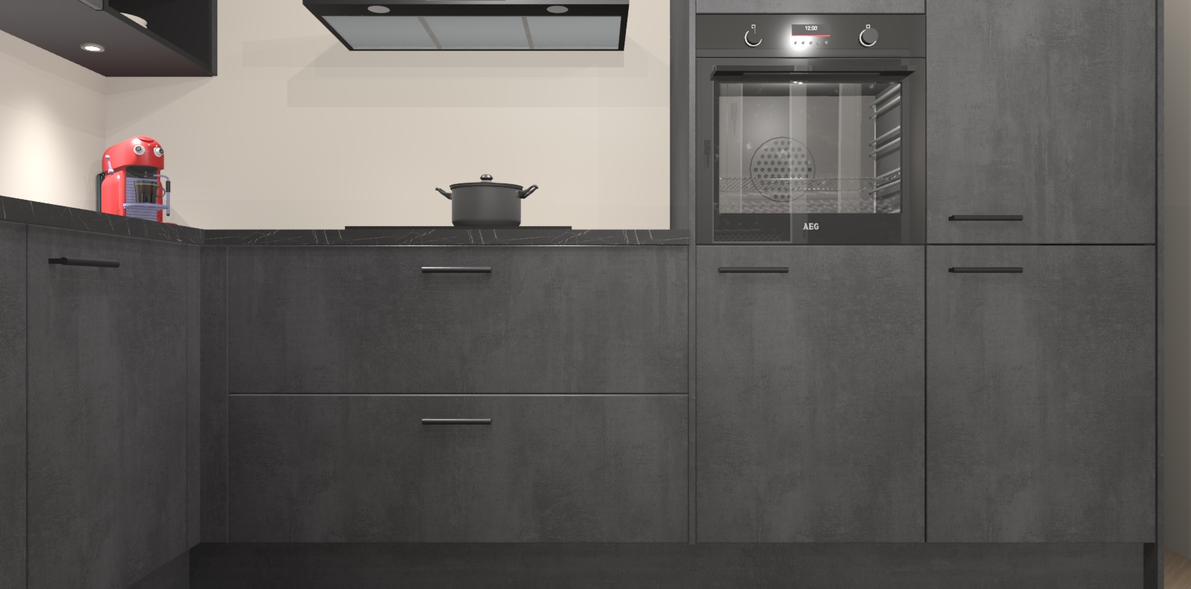 De Beton Zwarte keuken Cognac gaat alleen maar om de beste keukenervaring. Kies gewoon de beste apparatuur en ongeëvenaarde Duitse constructie die u thuis wilt hebben en verander uw huiskamer hartelijkheid meteen in professionaliteit. Laat de toon weten dat u gemakkelijk kan genieten van alle luxe die u verdiend? Bestel nu de Beton Zwarte keuken Cognac voor bij u thuis!