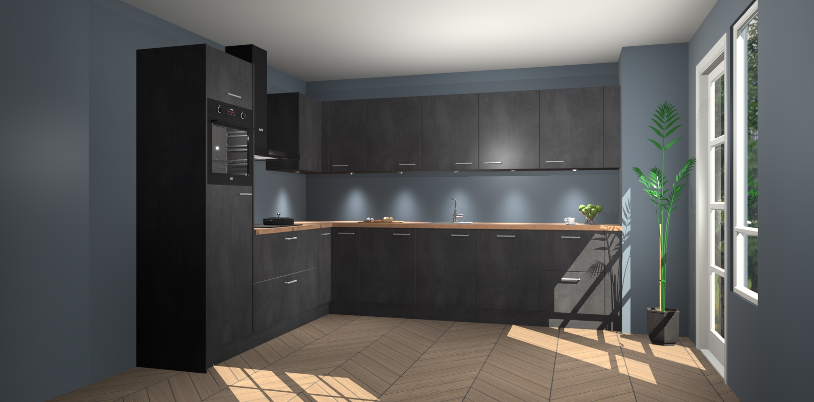Als u op zoek bent naar de perfecte keuken om uw huis mee op te fleuren, zoek dan niet verder dan de Beton Zwarte keuken Debar. Deze prachtige hoekkeuken straalt warmte en luxe uit met een modern maar geraffineerd design. Maak u nooit meer zorgen of u wel genoeg opbergruimte heeft; dit meubel biedt voldoende opbergruimte om al uw keukenbenodigdheden binnen handbereik te houden.