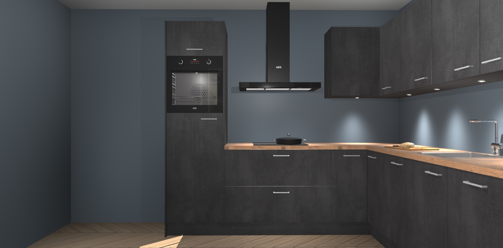 De Beton Zwarte keuken Debar is uitgerust met vijf inbouwapparaten die elke kooktaak handig en efficiënt maken. Een oven, inductiekookplaat, afzuigkap, vaatwasser en koelkast zijn standaard, maar kunnen na bestelling eenvoudig worden geupgrade naar AEG. Profiteer vervolgens van de softclose deuren voor snelle toegang en geruisloze toegang.