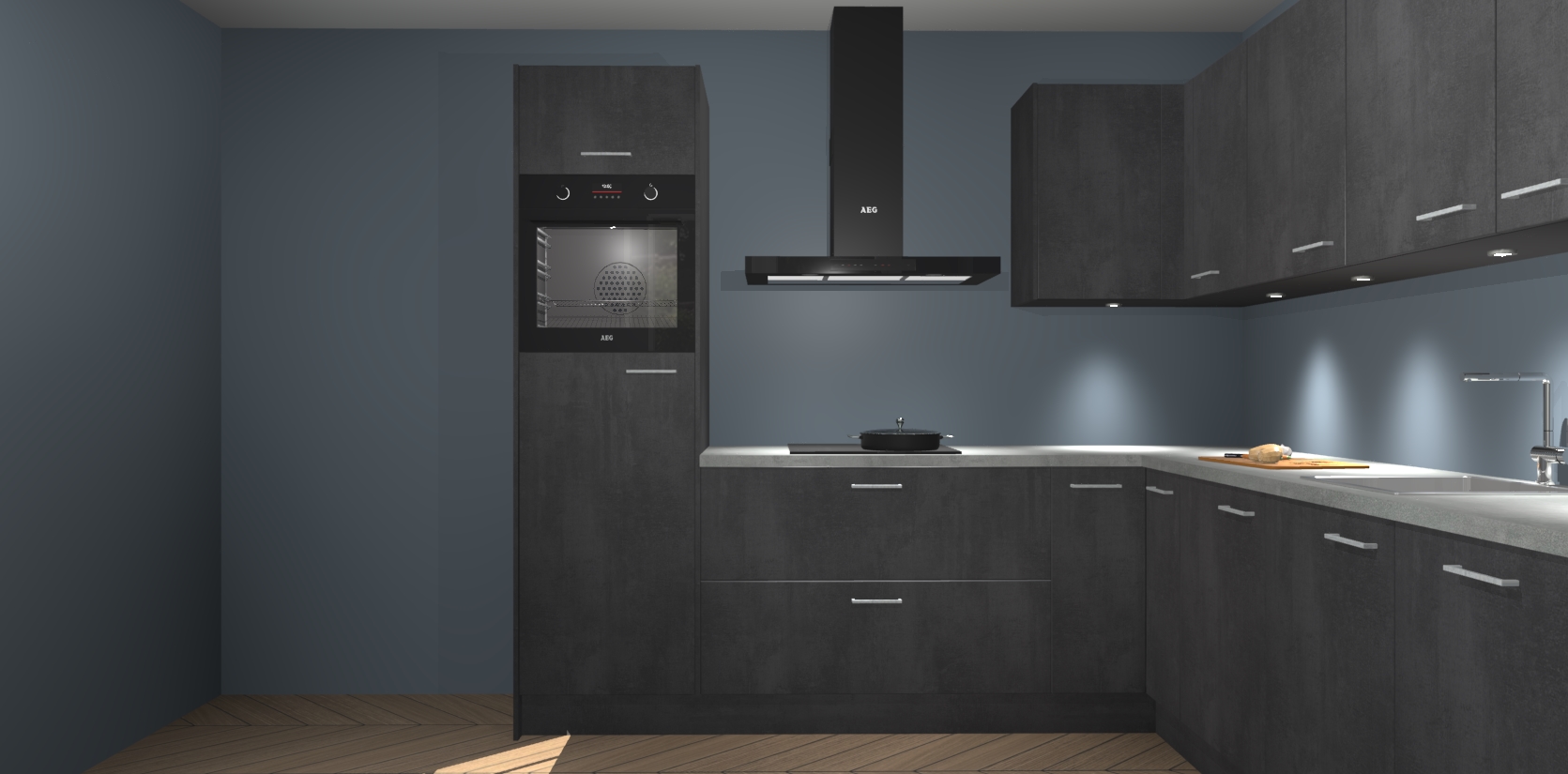 De Beton Zwarte keuken Debar is uitgerust met vijf inbouwapparaten die elke kooktaak handig en efficiënt maken. Een oven, inductiekookplaat, afzuigkap, vaatwasser en koelkast zijn standaard, maar kunnen na bestelling eenvoudig worden geupgrade naar AEG. Profiteer vervolgens van de softclose deuren voor snelle toegang en geruisloze toegang.