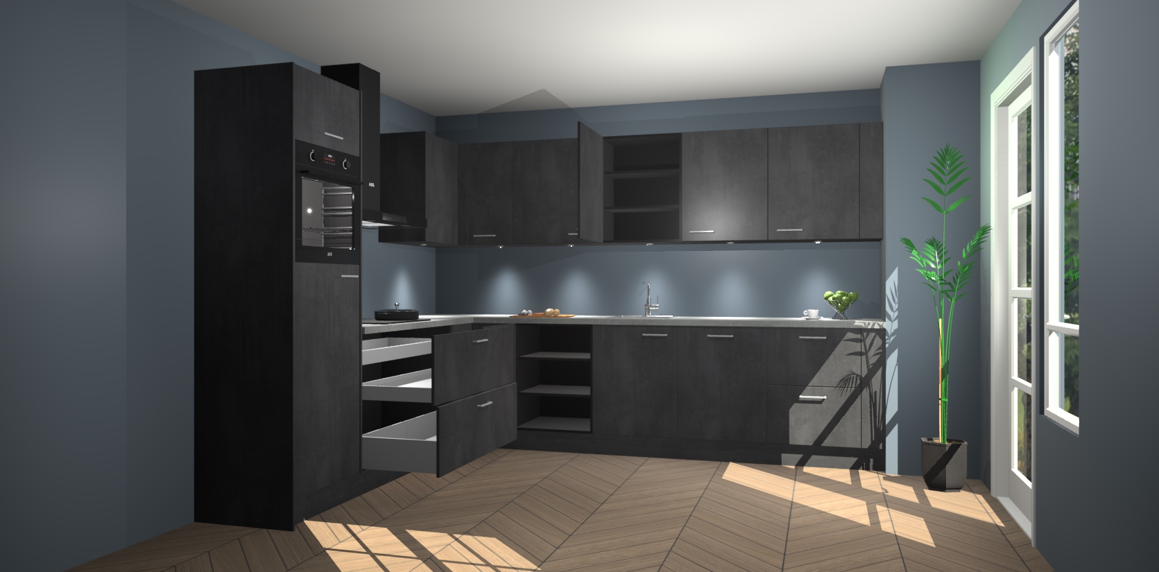 Als u op zoek bent naar de perfecte keuken om uw huis mee op te fleuren, zoek dan niet verder dan de Beton Zwarte keuken Debar. Deze prachtige hoekkeuken straalt warmte en luxe uit met een modern maar geraffineerd design. Maak u nooit meer zorgen of u wel genoeg opbergruimte heeft; dit meubel biedt voldoende opbergruimte om al uw keukenbenodigdheden binnen handbereik te houden.