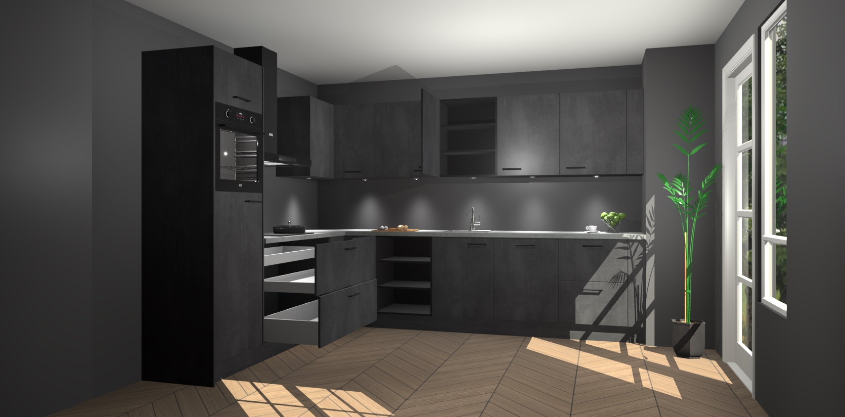 Als u op zoek bent naar de perfecte keuken om uw huis mee op te fleuren, zoek dan niet verder dan de Beton Zwarte keuken Debar. Deze prachtige hoekkeuken straalt warmte en luxe uit met een modern maar geraffineerd design. Maak u nooit meer zorgen of u wel genoeg opbergruimte heeft; dit meubel biedt voldoende opbergruimte om al uw keukenbenodigdheden binnen handbereik te houden.