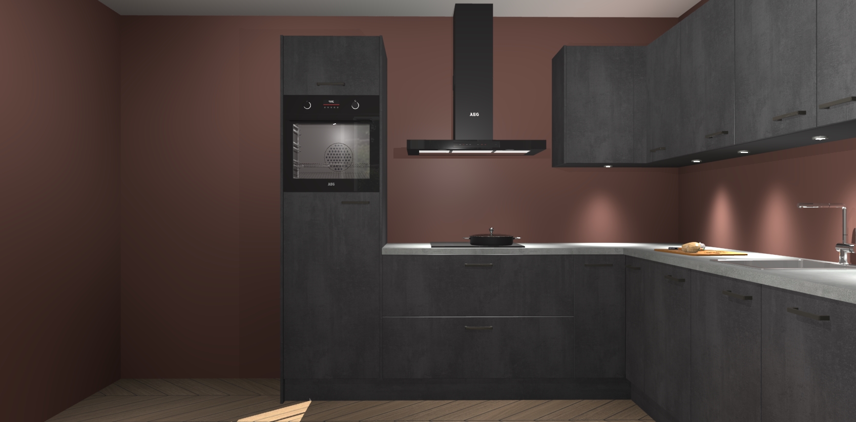 De Beton Zwarte keuken Debar is uitgerust met vijf inbouwapparaten die elke kooktaak handig en efficiënt maken. Een oven, inductiekookplaat, afzuigkap, vaatwasser en koelkast zijn standaard, maar kunnen na bestelling eenvoudig worden geupgrade naar AEG. Profiteer vervolgens van de softclose deuren voor snelle toegang en geruisloze toegang.