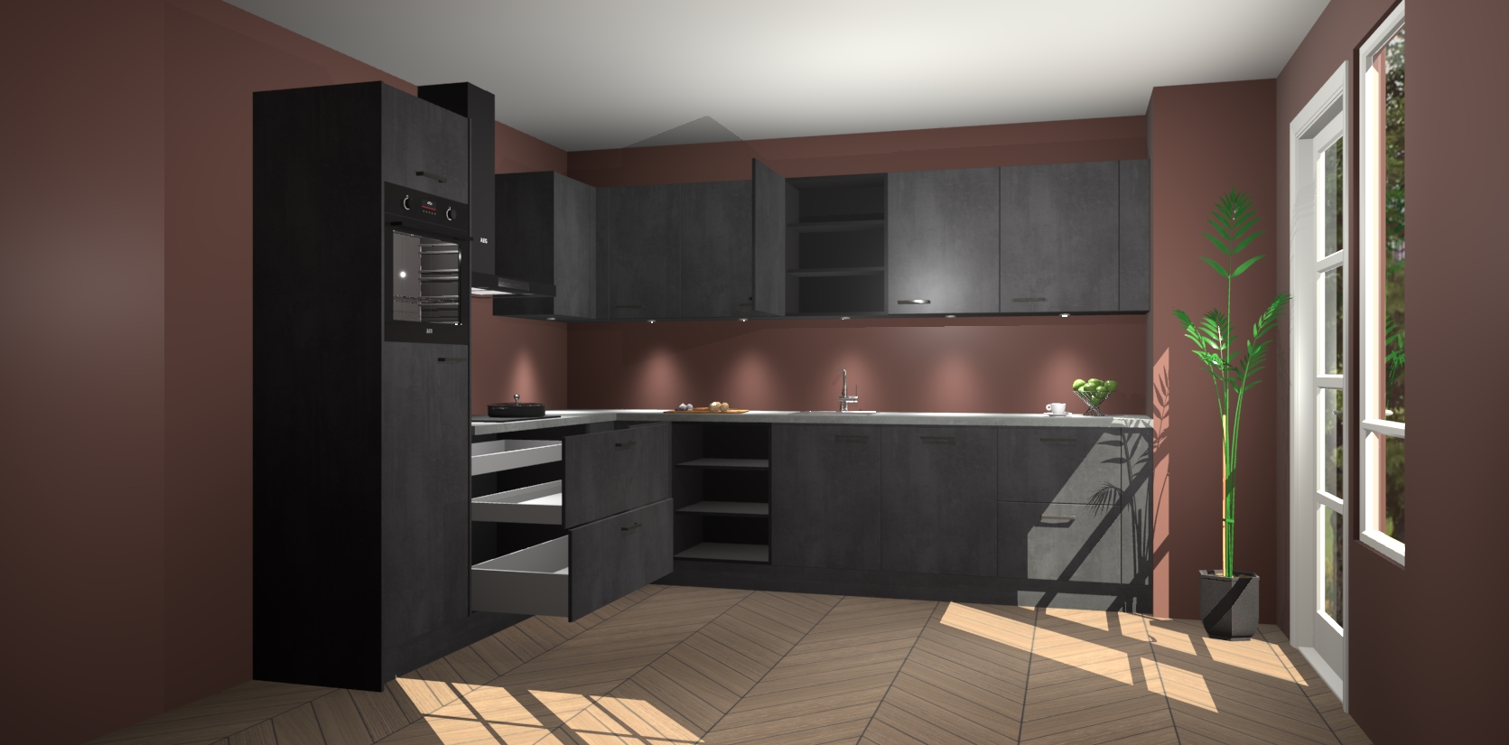 Als u op zoek bent naar de perfecte keuken om uw huis mee op te fleuren, zoek dan niet verder dan de Beton Zwarte keuken Debar. Deze prachtige hoekkeuken straalt warmte en luxe uit met een modern maar geraffineerd design. Maak u nooit meer zorgen of u wel genoeg opbergruimte heeft; dit meubel biedt voldoende opbergruimte om al uw keukenbenodigdheden binnen handbereik te houden.