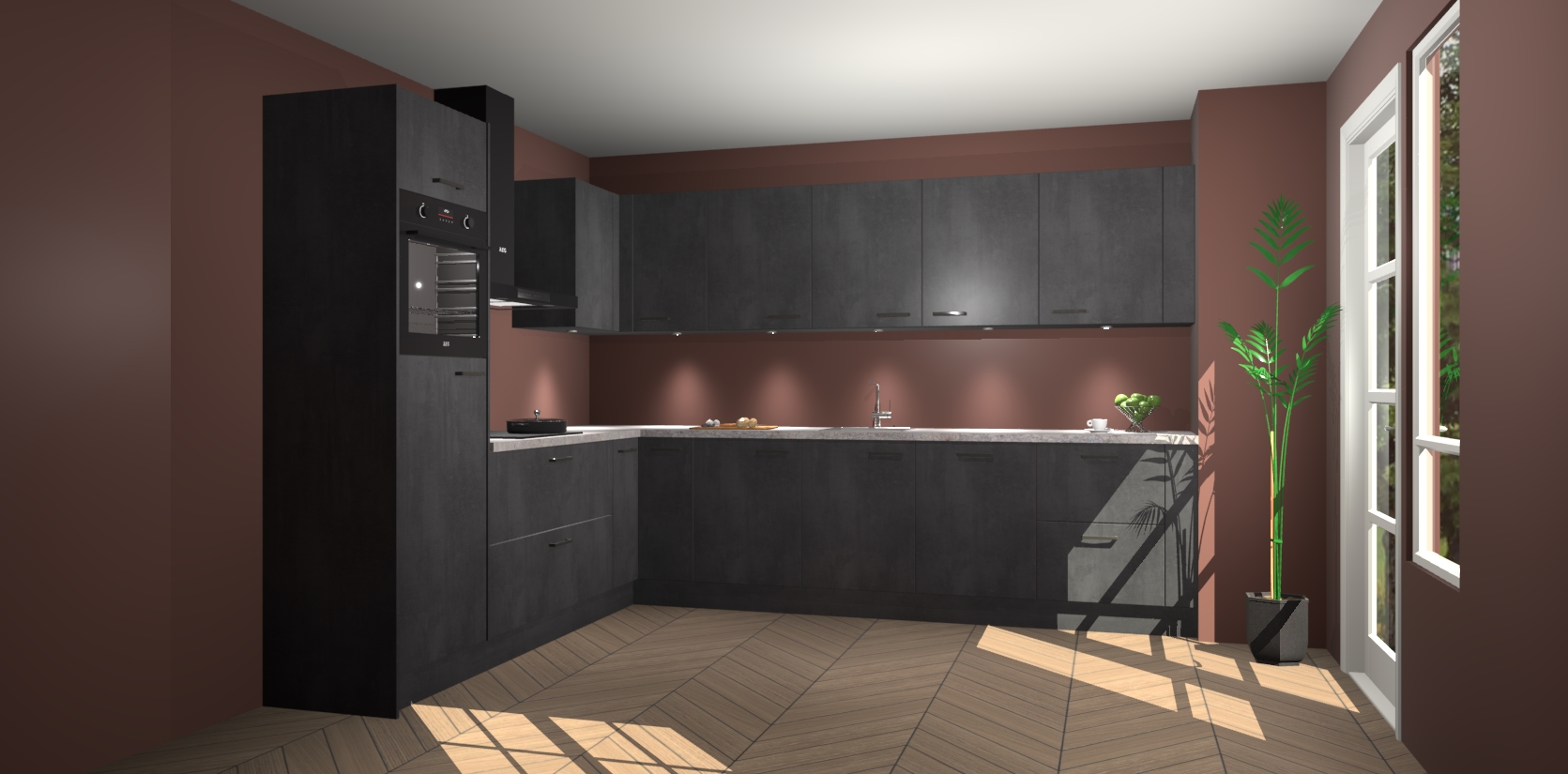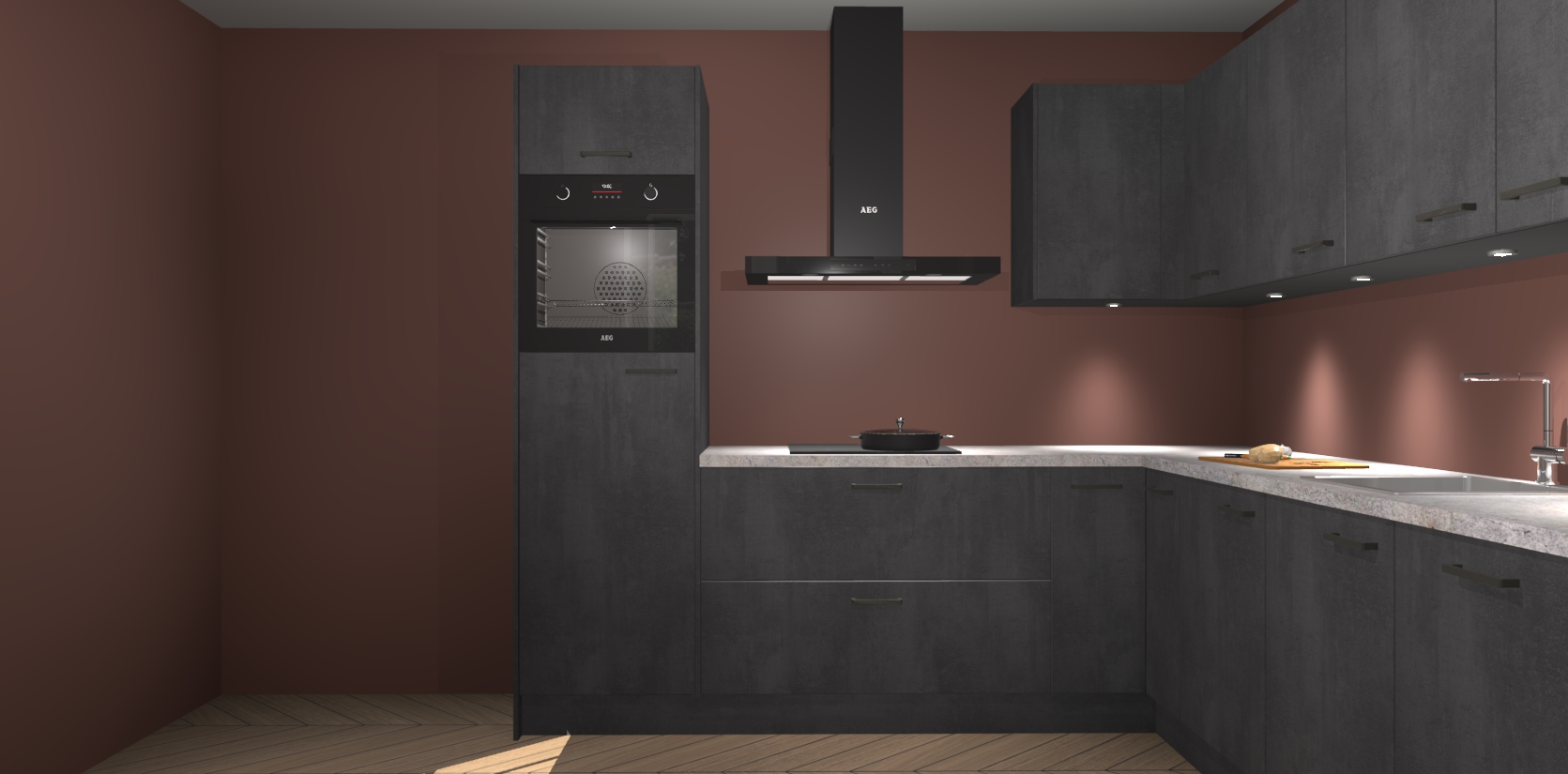 De Beton Zwarte keuken Debar is uitgerust met vijf inbouwapparaten die elke kooktaak handig en efficiënt maken. Een oven, inductiekookplaat, afzuigkap, vaatwasser en koelkast zijn standaard, maar kunnen na bestelling eenvoudig worden geupgrade naar AEG. Profiteer vervolgens van de softclose deuren voor snelle toegang en geruisloze toegang.
