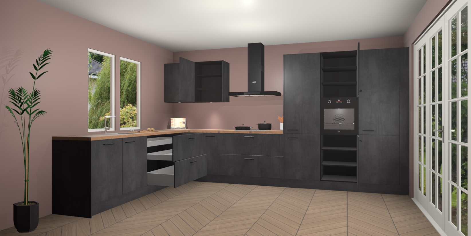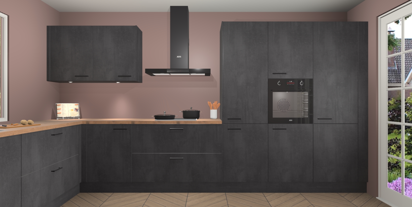 Kom dichtbij de perfecte keuken van uw dromen met de Beton Zwarte keuken Debrecen. Met een prachtige houtlook en eigentijds ontwerp, straalt deze keuken warmte en sfeer uit. Of u nu liefhebber bent van traditionele of moderne stijlen, er is genoeg ruimte om aan al uw behoeften te voldoen.