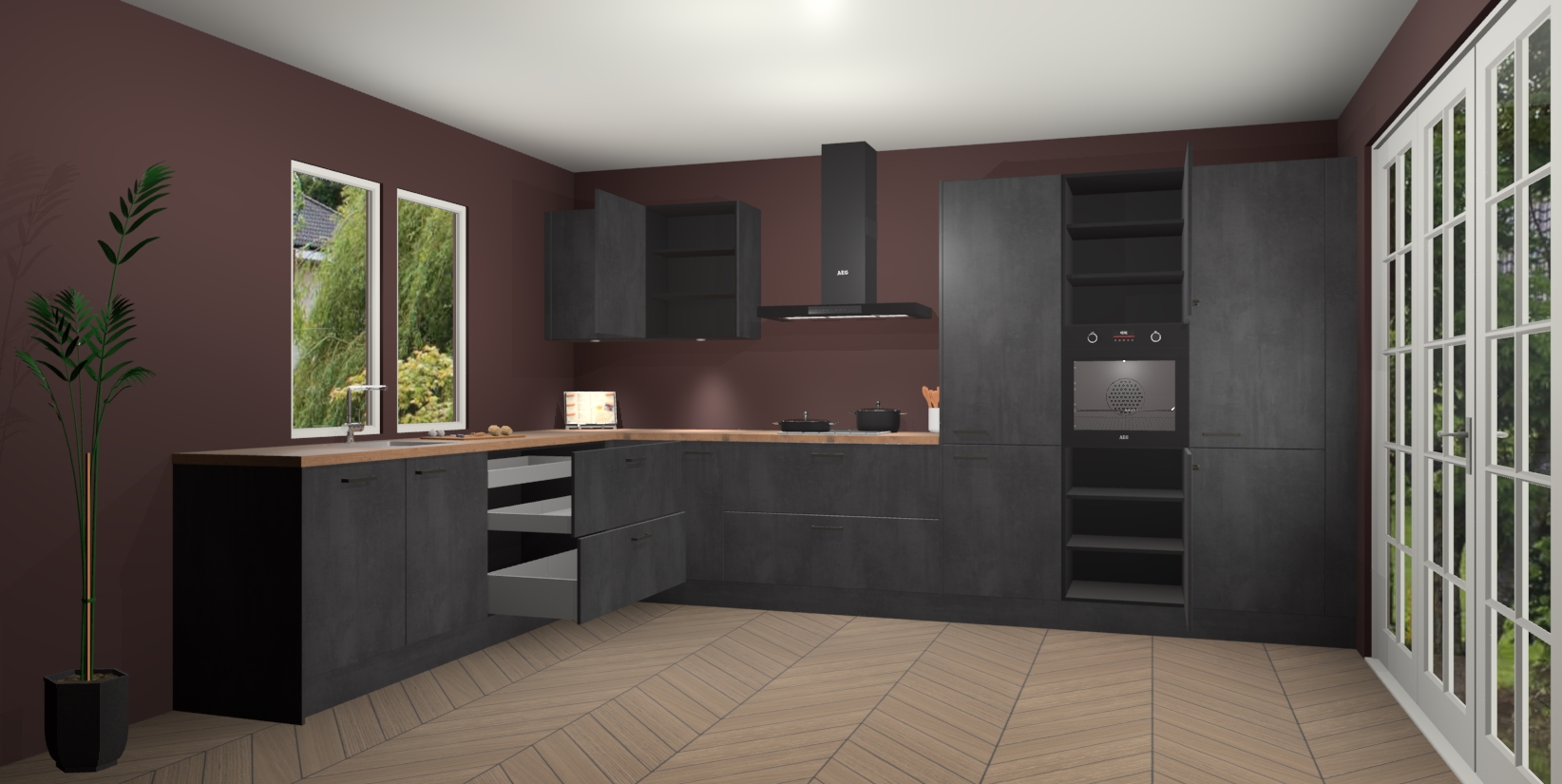 Kom dichtbij de perfecte keuken van uw dromen met de Beton Zwarte keuken Debrecen. Met een prachtige houtlook en eigentijds ontwerp, straalt deze keuken warmte en sfeer uit. Of u nu liefhebber bent van traditionele of moderne stijlen, er is genoeg ruimte om aan al uw behoeften te voldoen.