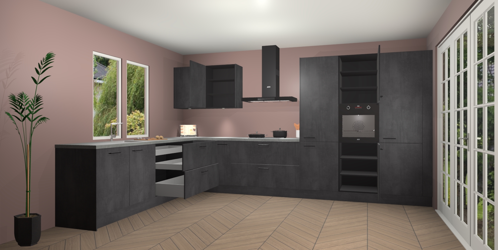 Kom dichtbij de perfecte keuken van uw dromen met de Beton Zwarte keuken Debrecen. Met een prachtige houtlook en eigentijds ontwerp, straalt deze keuken warmte en sfeer uit. Of u nu liefhebber bent van traditionele of moderne stijlen, er is genoeg ruimte om aan al uw behoeften te voldoen.