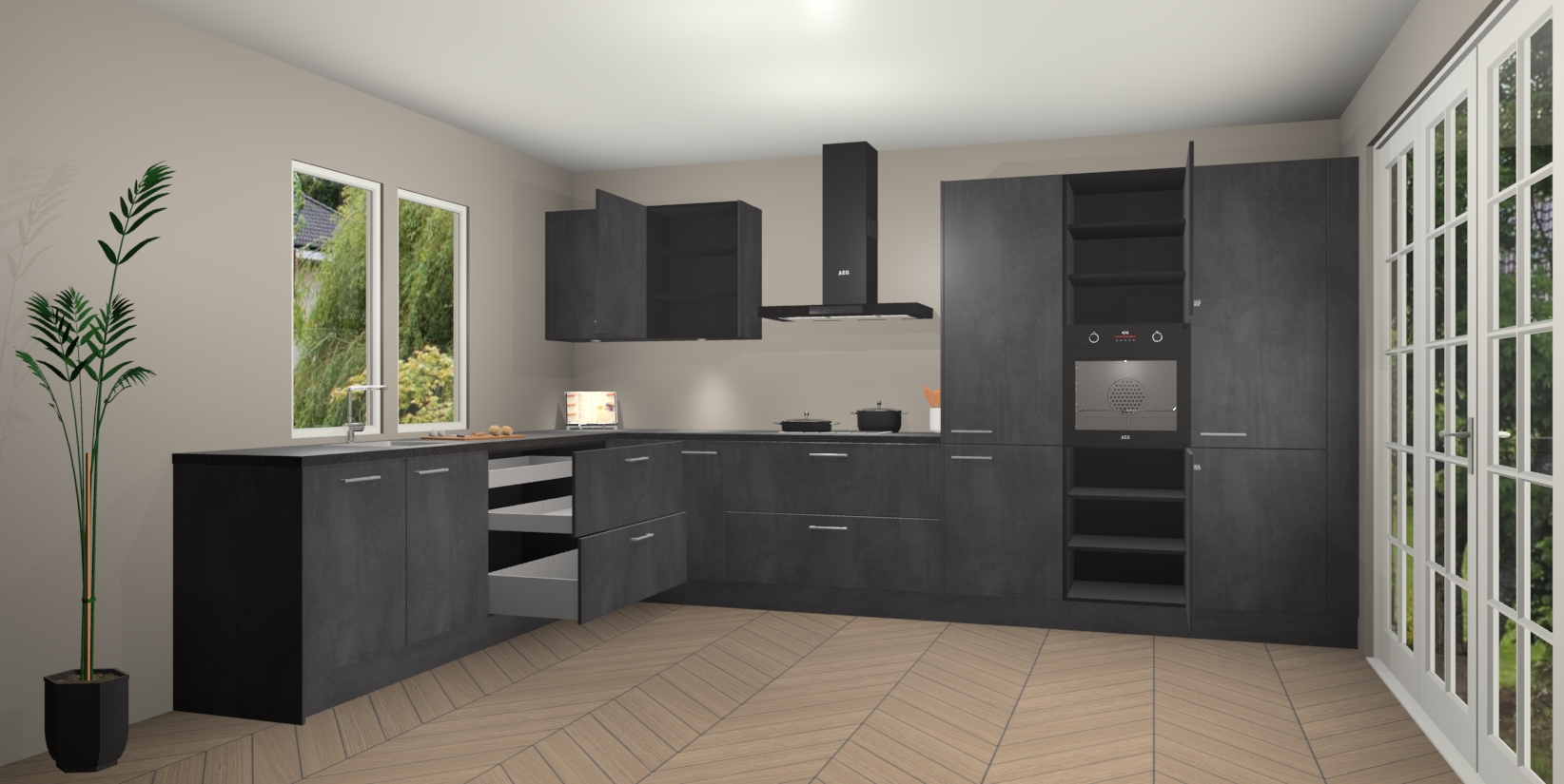 Kom dichtbij de perfecte keuken van uw dromen met de Beton Zwarte keuken Debrecen. Met een prachtige houtlook en eigentijds ontwerp, straalt deze keuken warmte en sfeer uit. Of u nu liefhebber bent van traditionele of moderne stijlen, er is genoeg ruimte om aan al uw behoeften te voldoen.